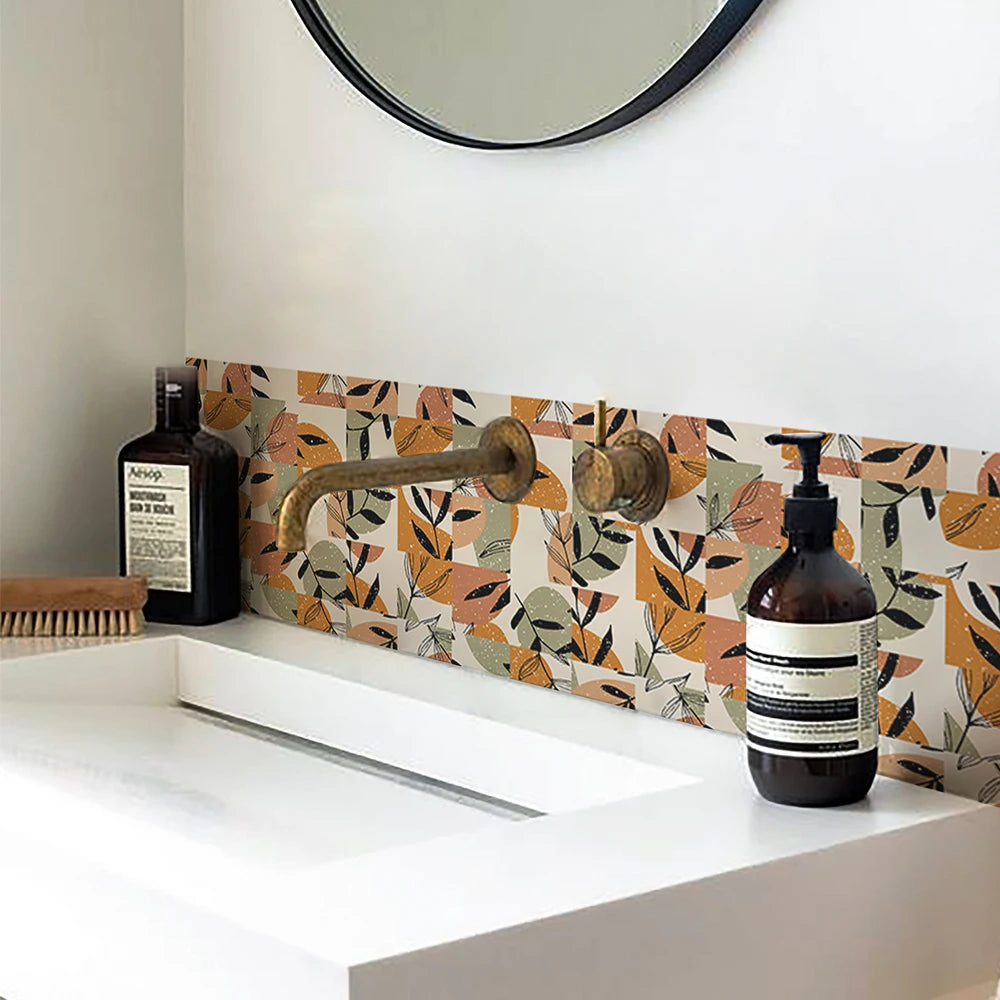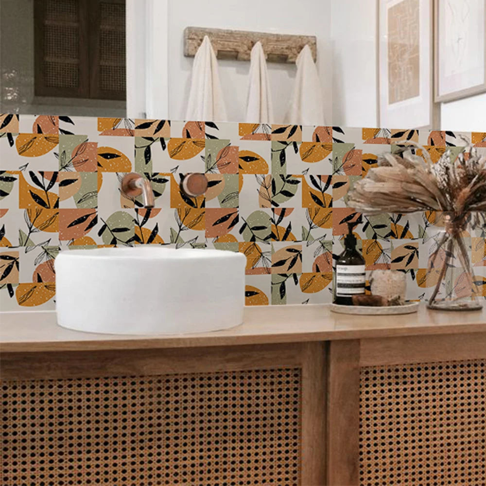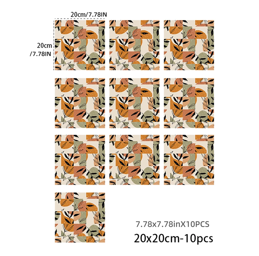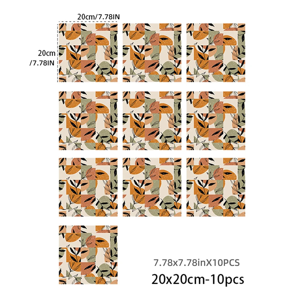10 PCS Frosted Texture Boho Geometric Flower Waterproof Kitchen Wall Sticker Self-adhesive Floor Tile Stickers