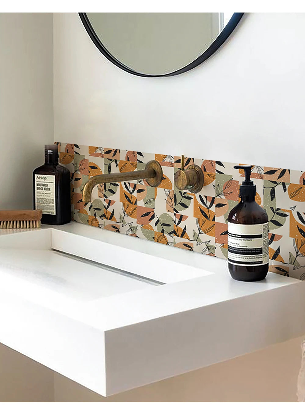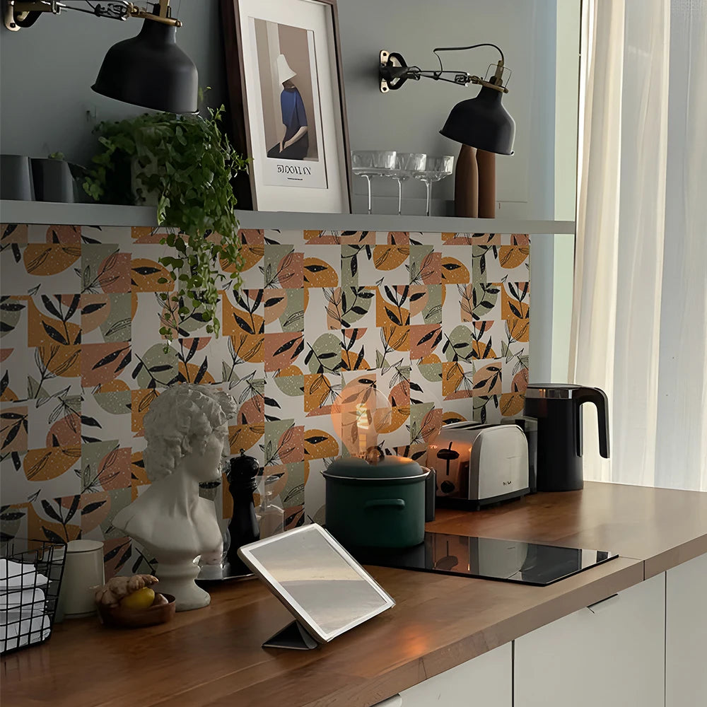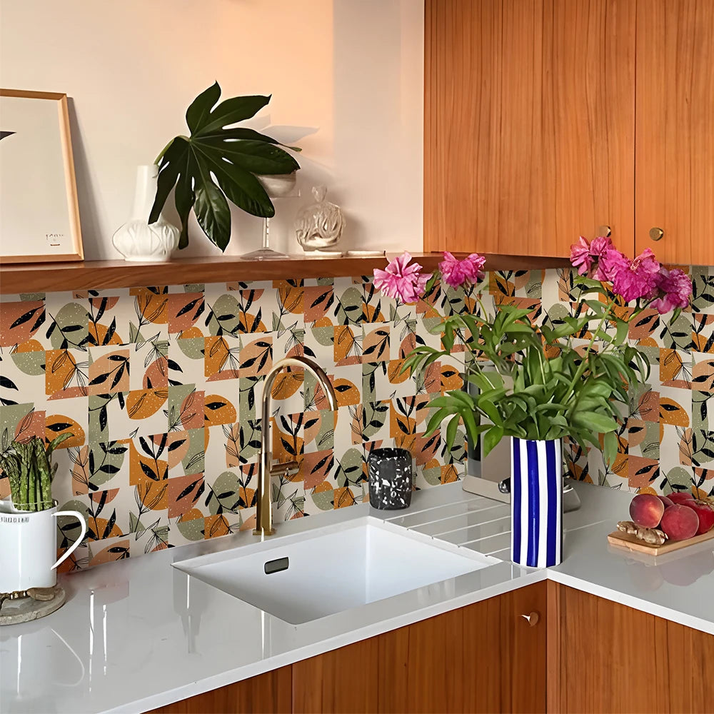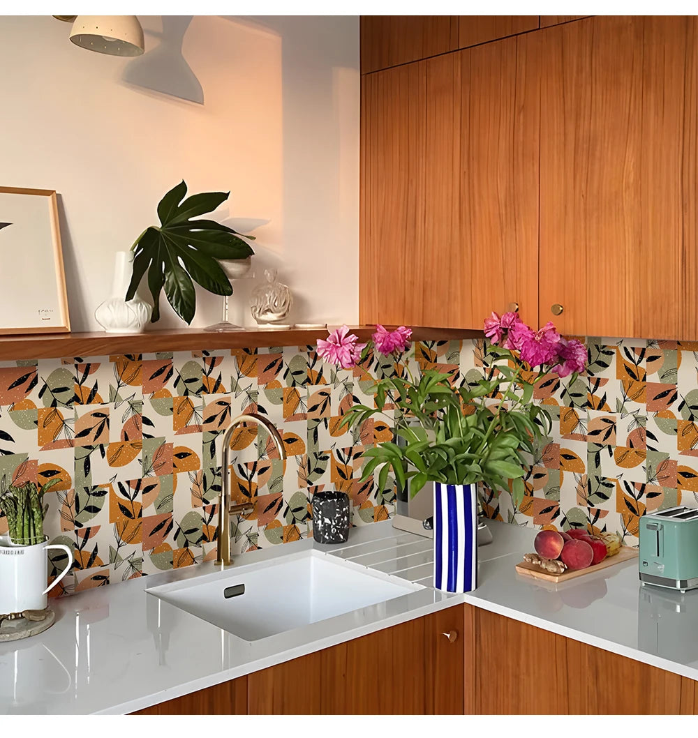 10 PCS Frosted Texture Boho Geometric Flower Waterproof Kitchen Wall Sticker Self-adhesive Floor Tile Stickers
