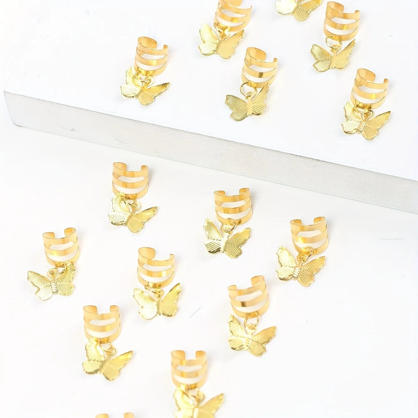 15pcs Boho Butterfly Hair Ring Hair Accessories Loc Hair Jewelry for Braids Dreadlocks Beads Hair Dread Locks Hair Braiding