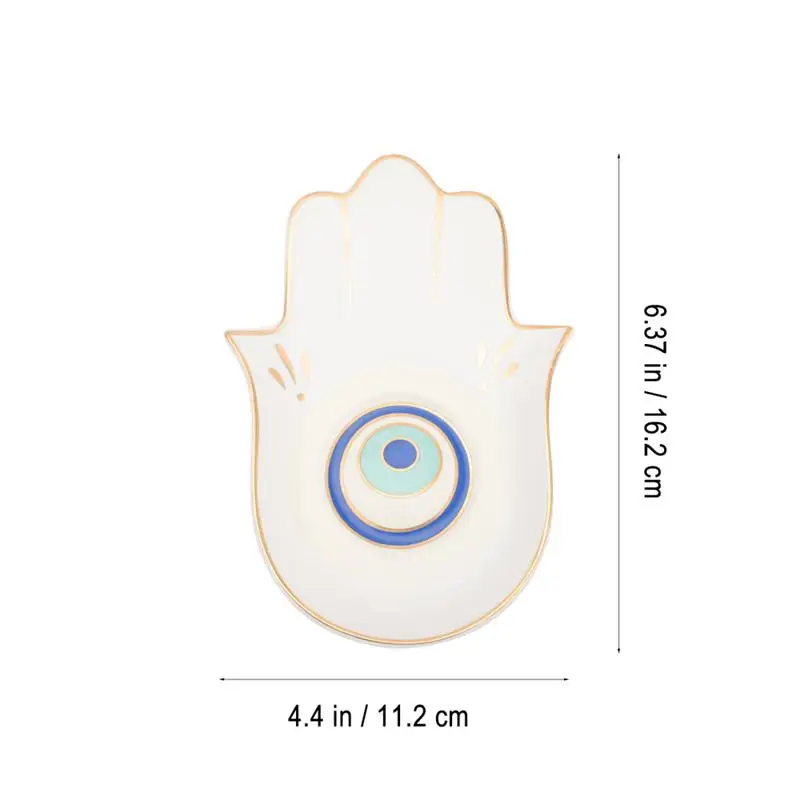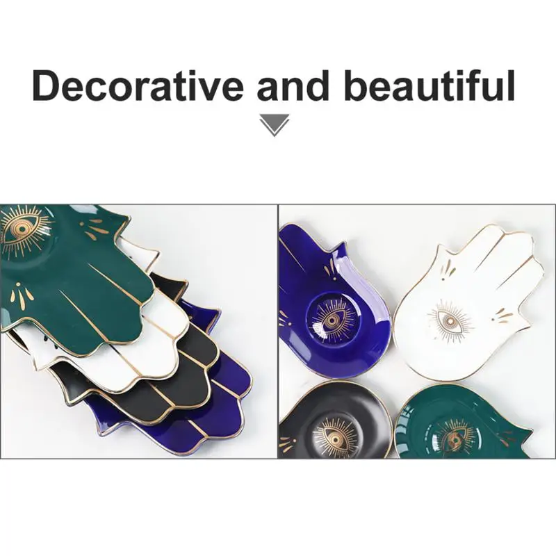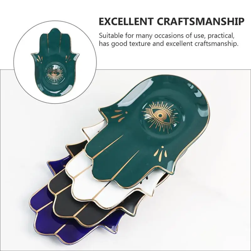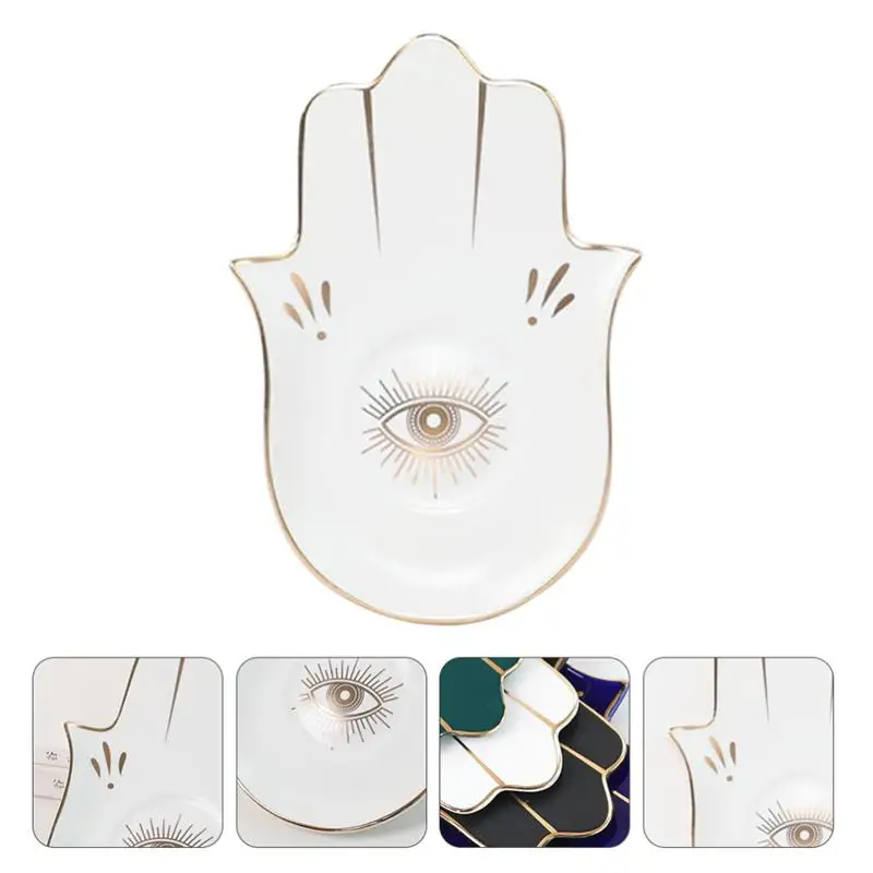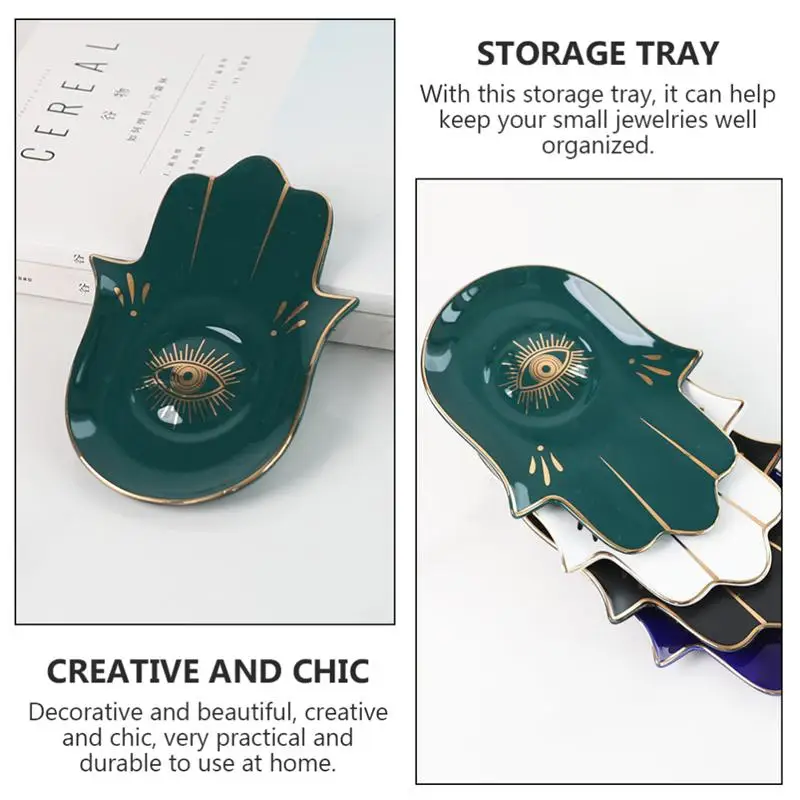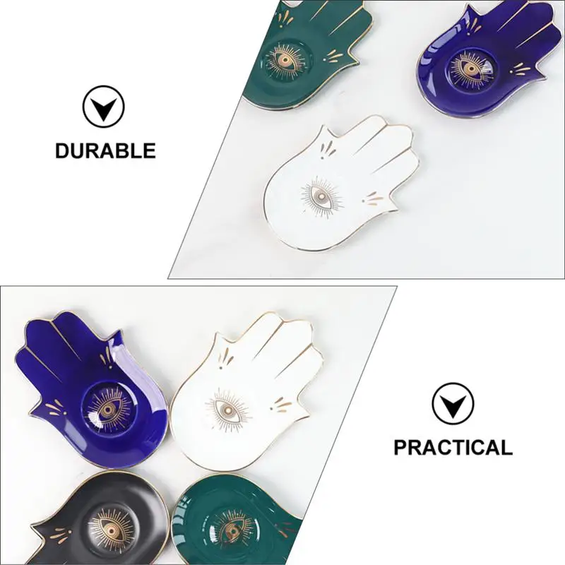1Pc Evil Eye Buddhist Hand Tray Decorative Jewelry Tray Ceramic Storage Holder Small Storage Plate Jewelry Case Decor