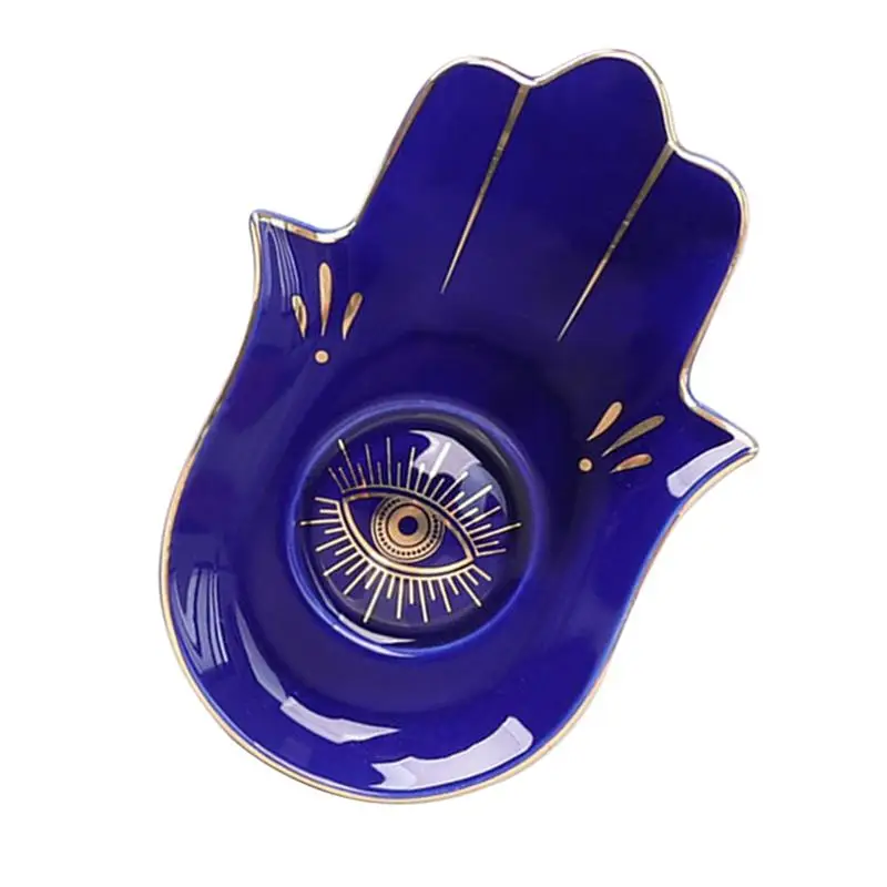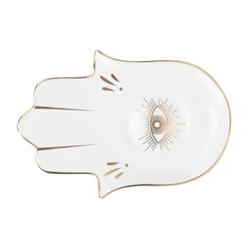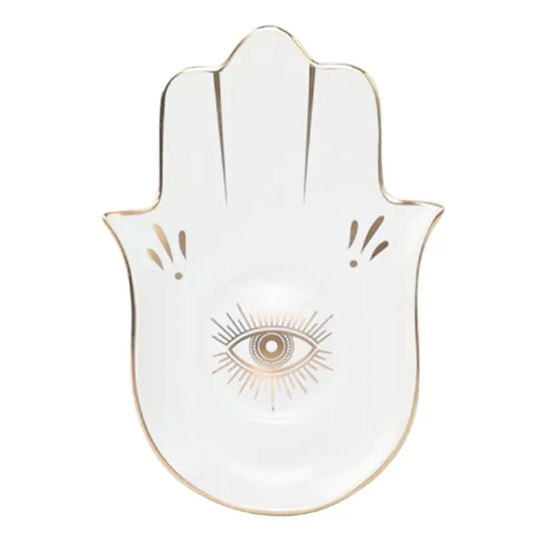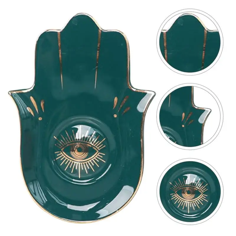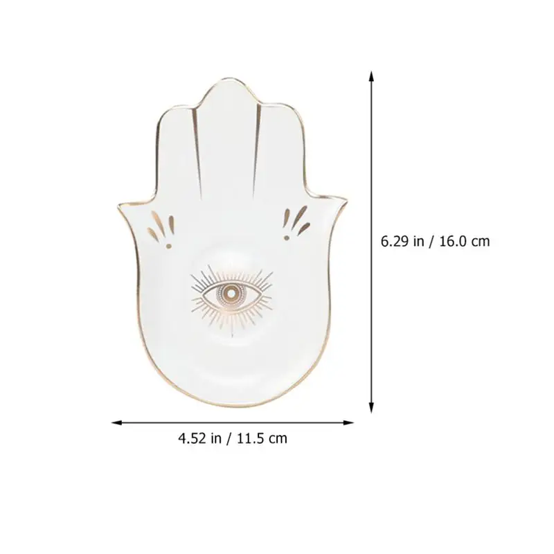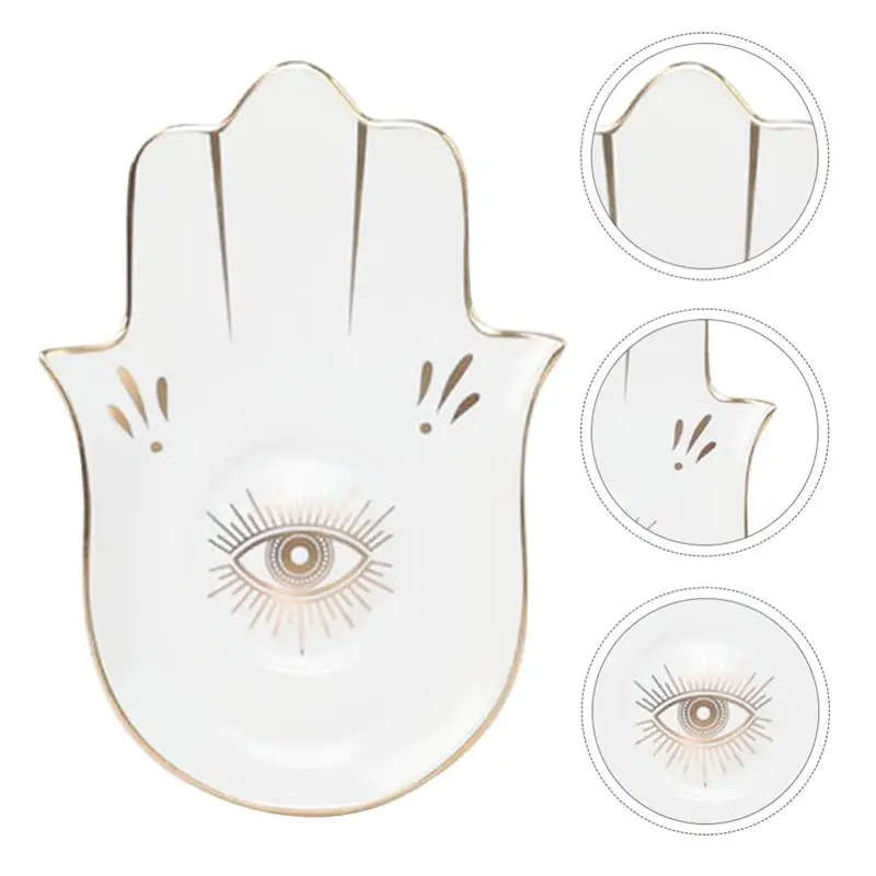 1Pc Evil Eye Buddhist Hand Tray Decorative Jewelry Tray Ceramic Storage Holder Small Storage Plate Jewelry Case Decor