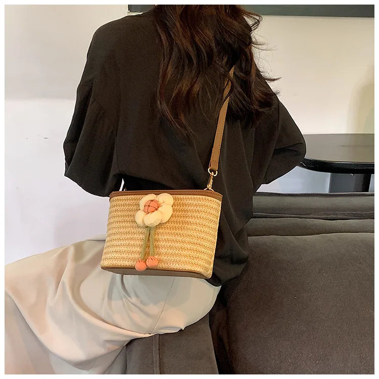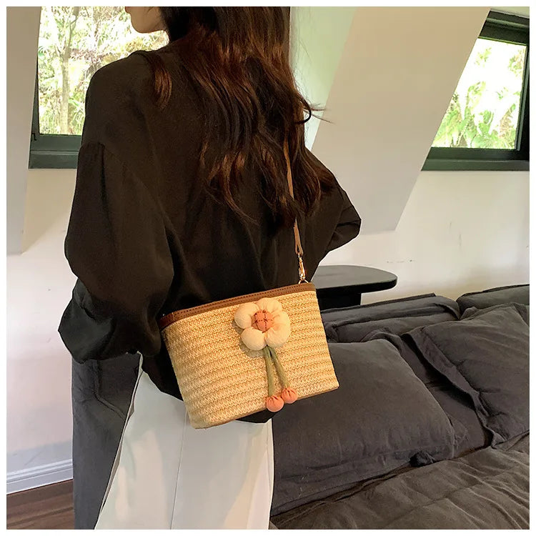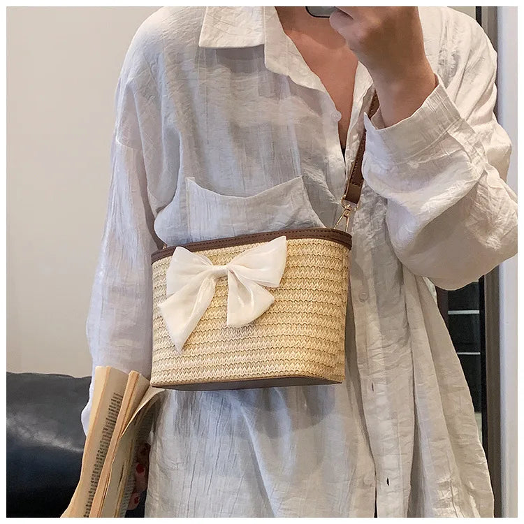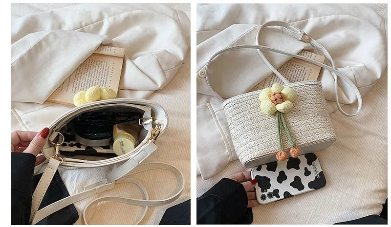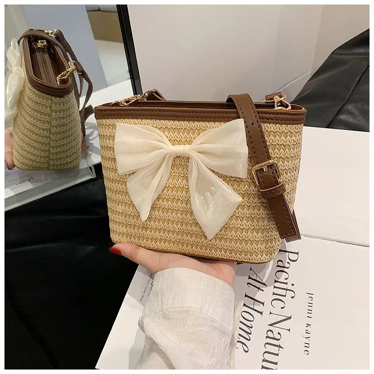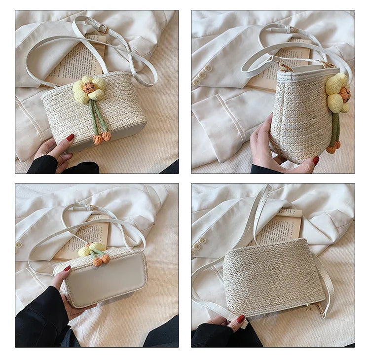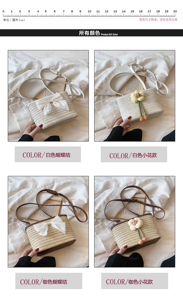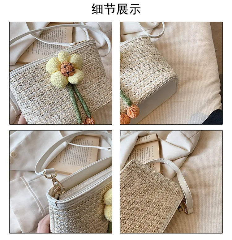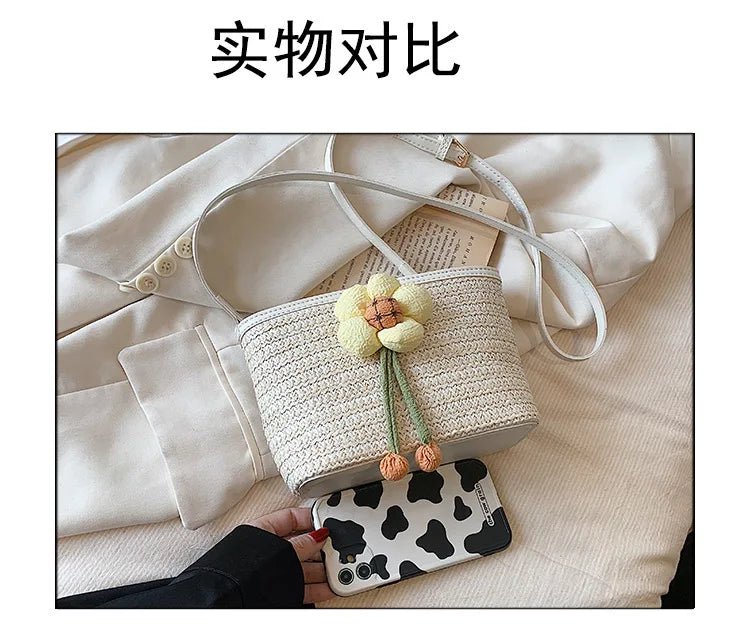 2024 New Woven Bag Women's Summer Versatile Crossbody Beach Resort Bag Mini Bohemian Phone Wallet Bucket Bag