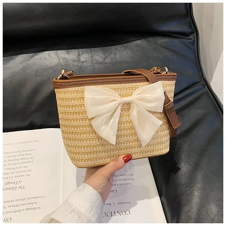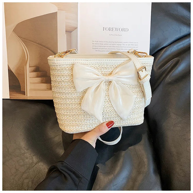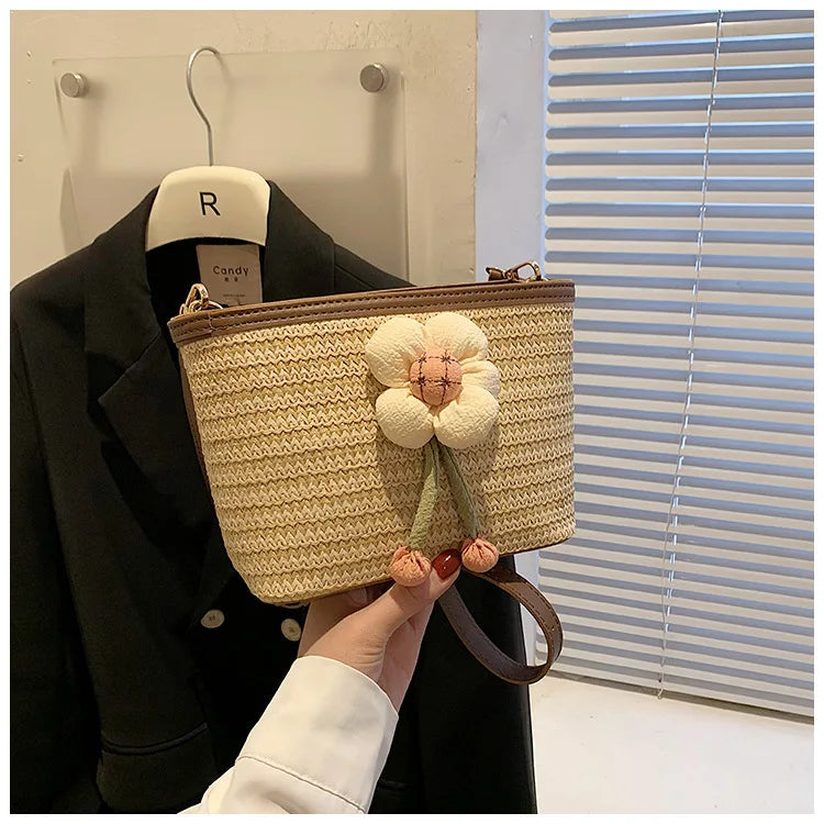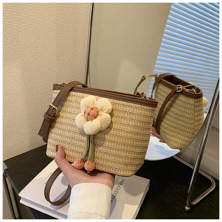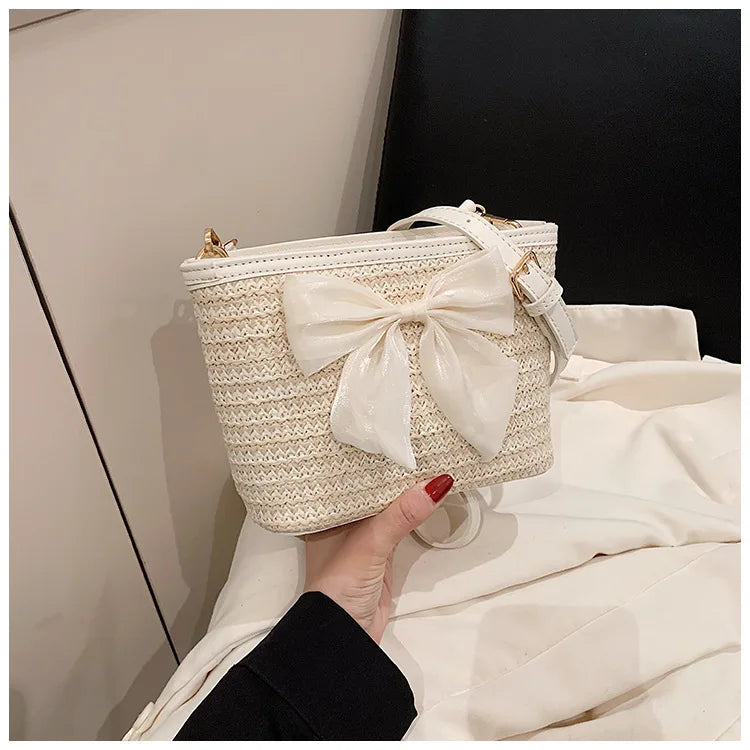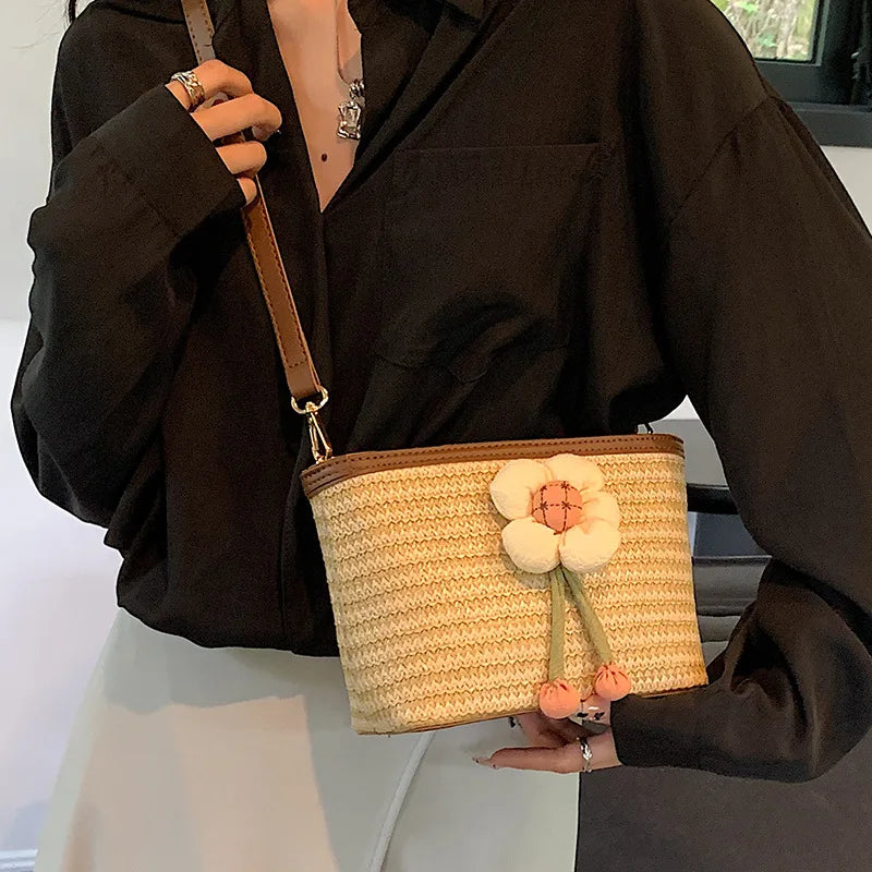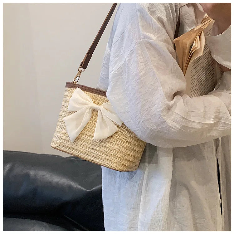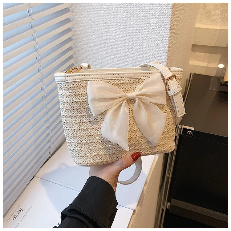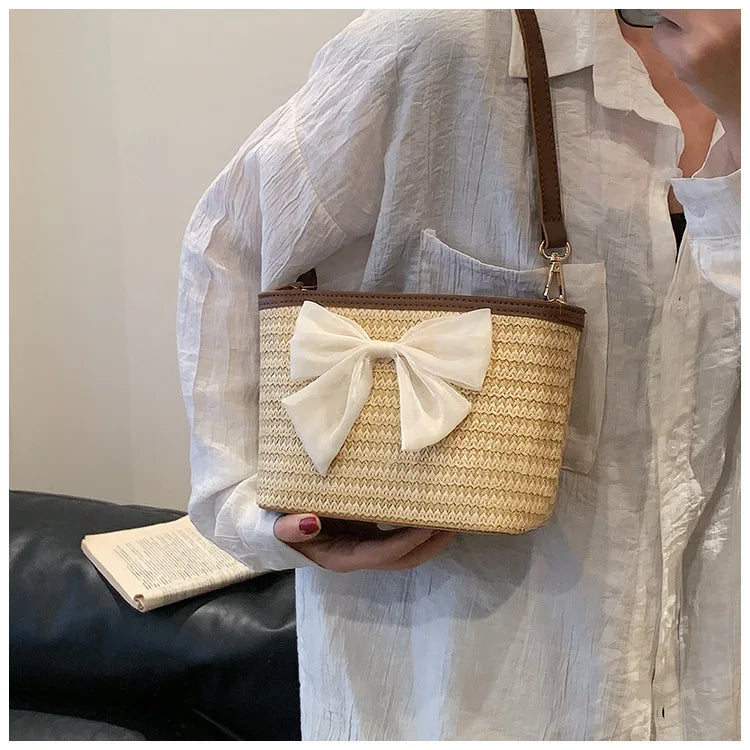 2024 New Woven Bag Women's Summer Versatile Crossbody Beach Resort Bag Mini Bohemian Phone Wallet Bucket Bag