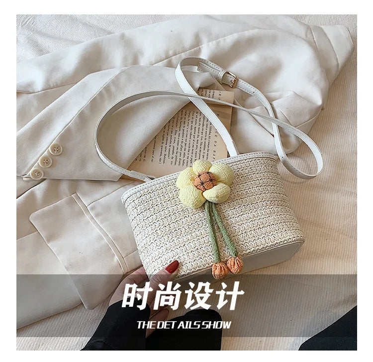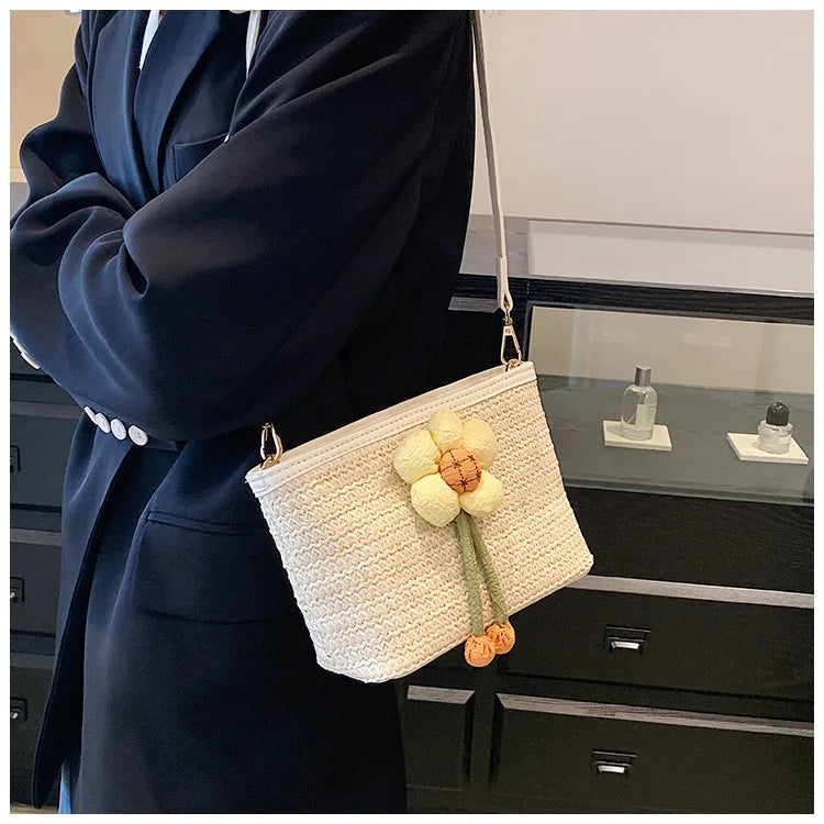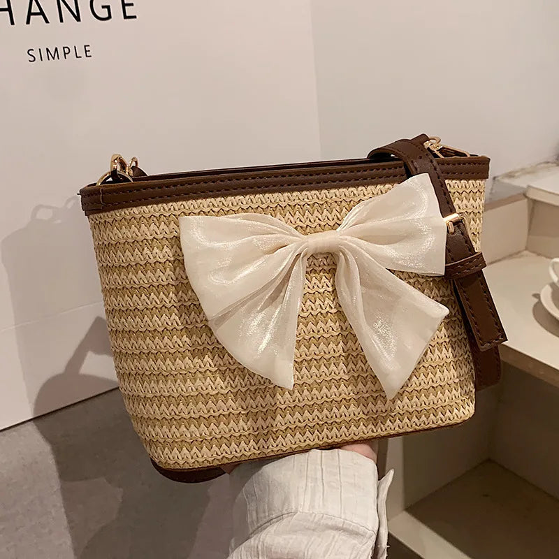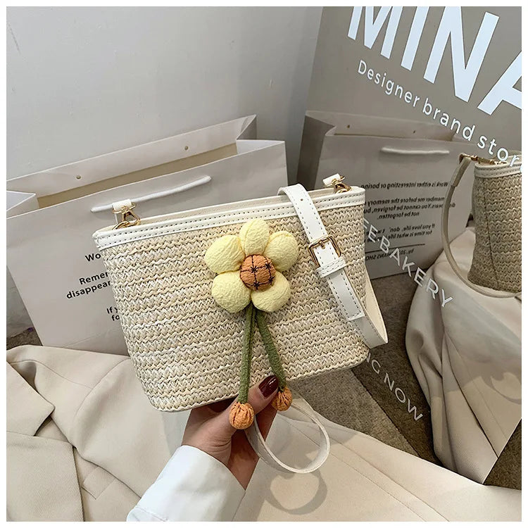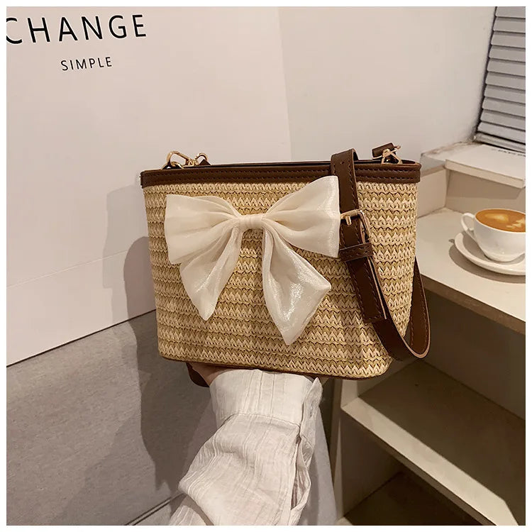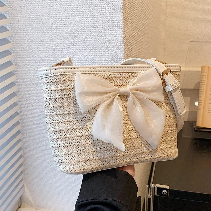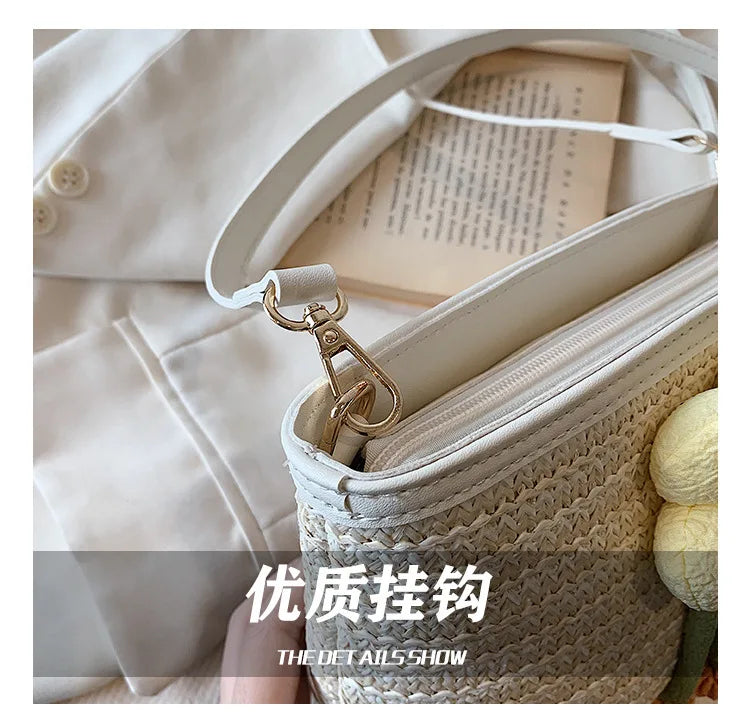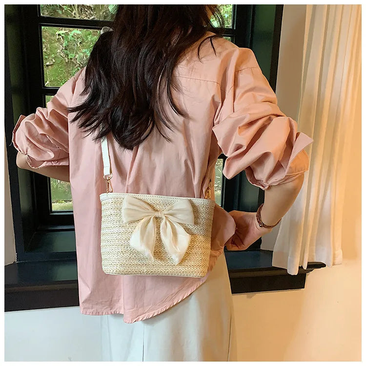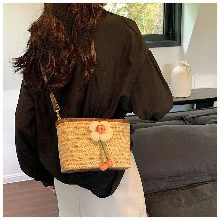 2024 New Woven Bag Women's Summer Versatile Crossbody Beach Resort Bag Mini Bohemian Phone Wallet Bucket Bag