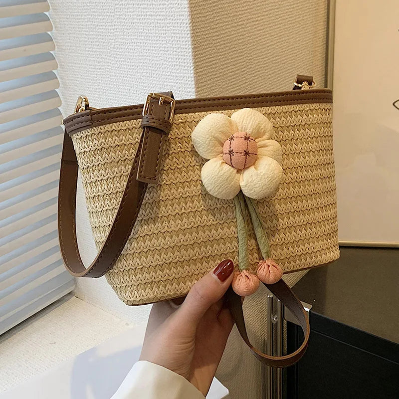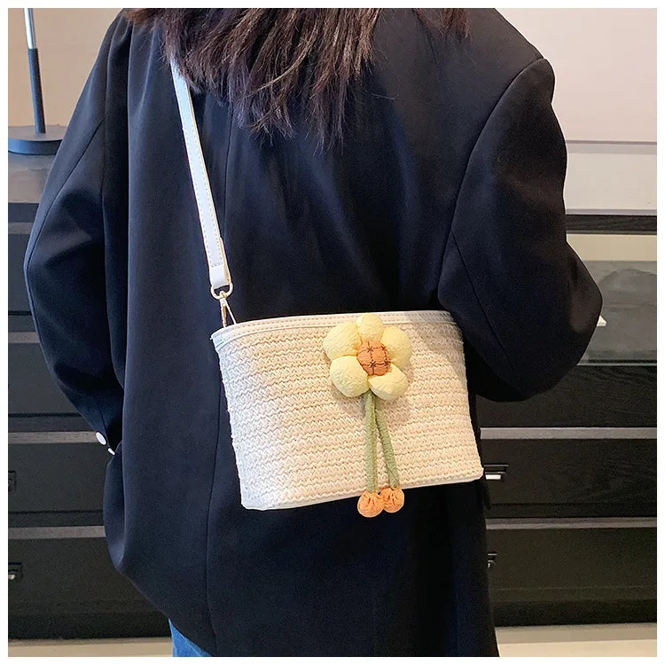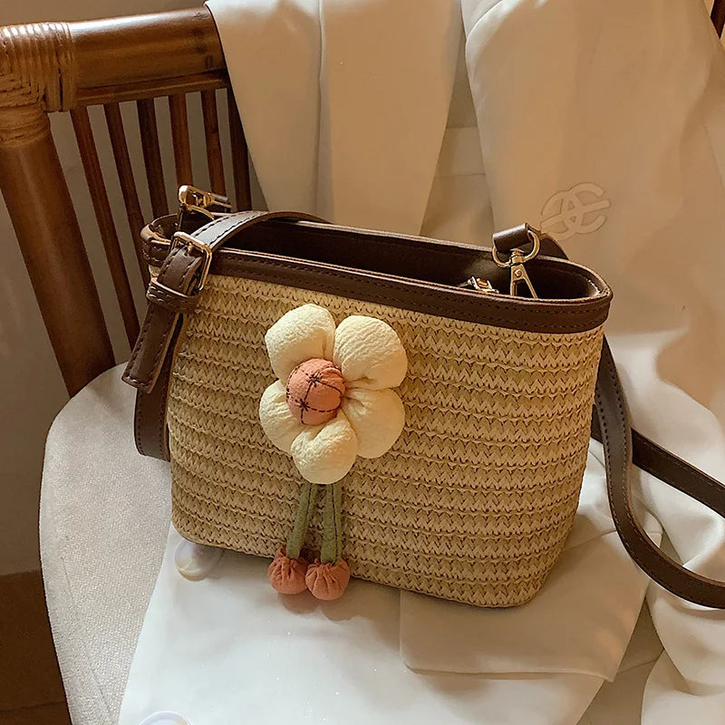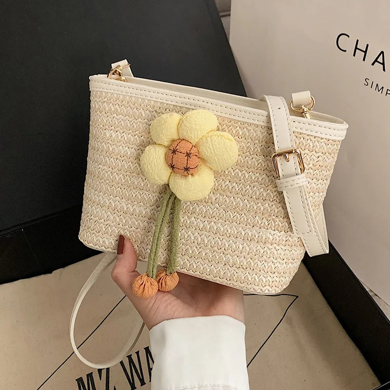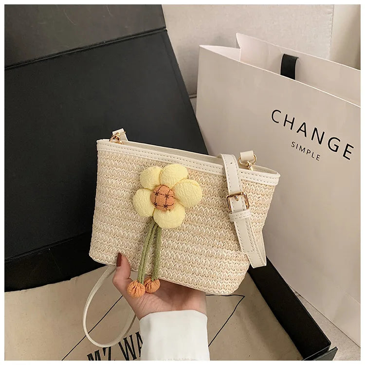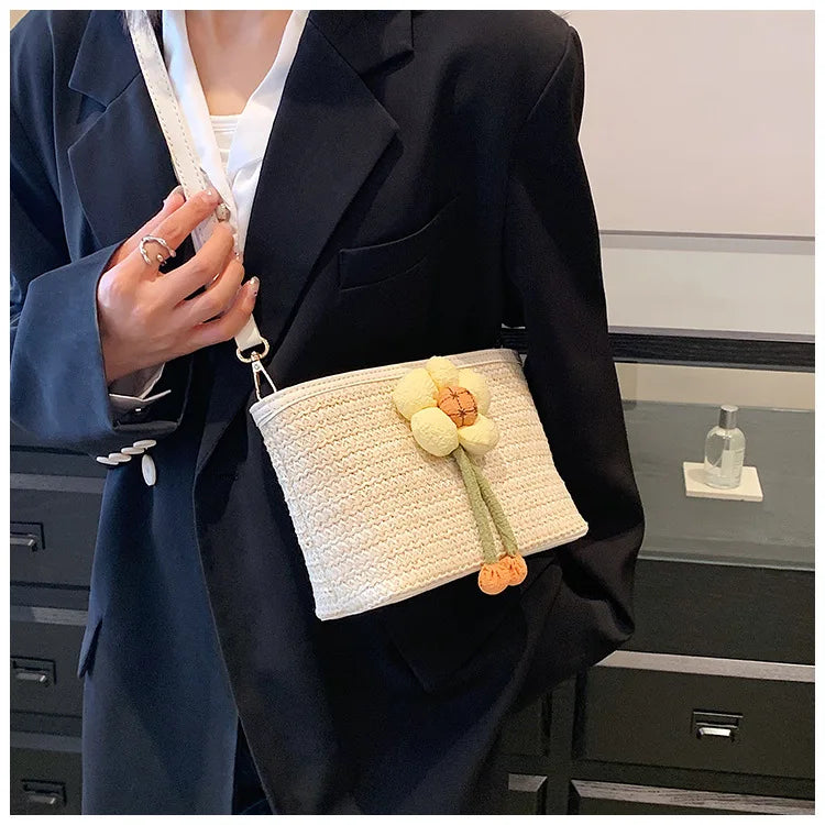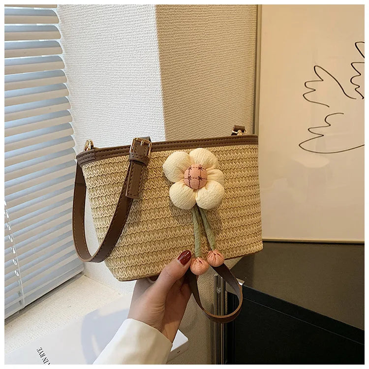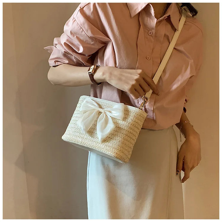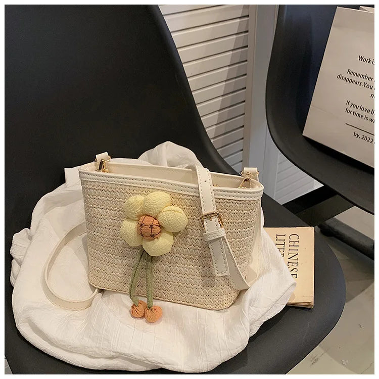 2024 New Woven Bag Women's Summer Versatile Crossbody Beach Resort Bag Mini Bohemian Phone Wallet Bucket Bag