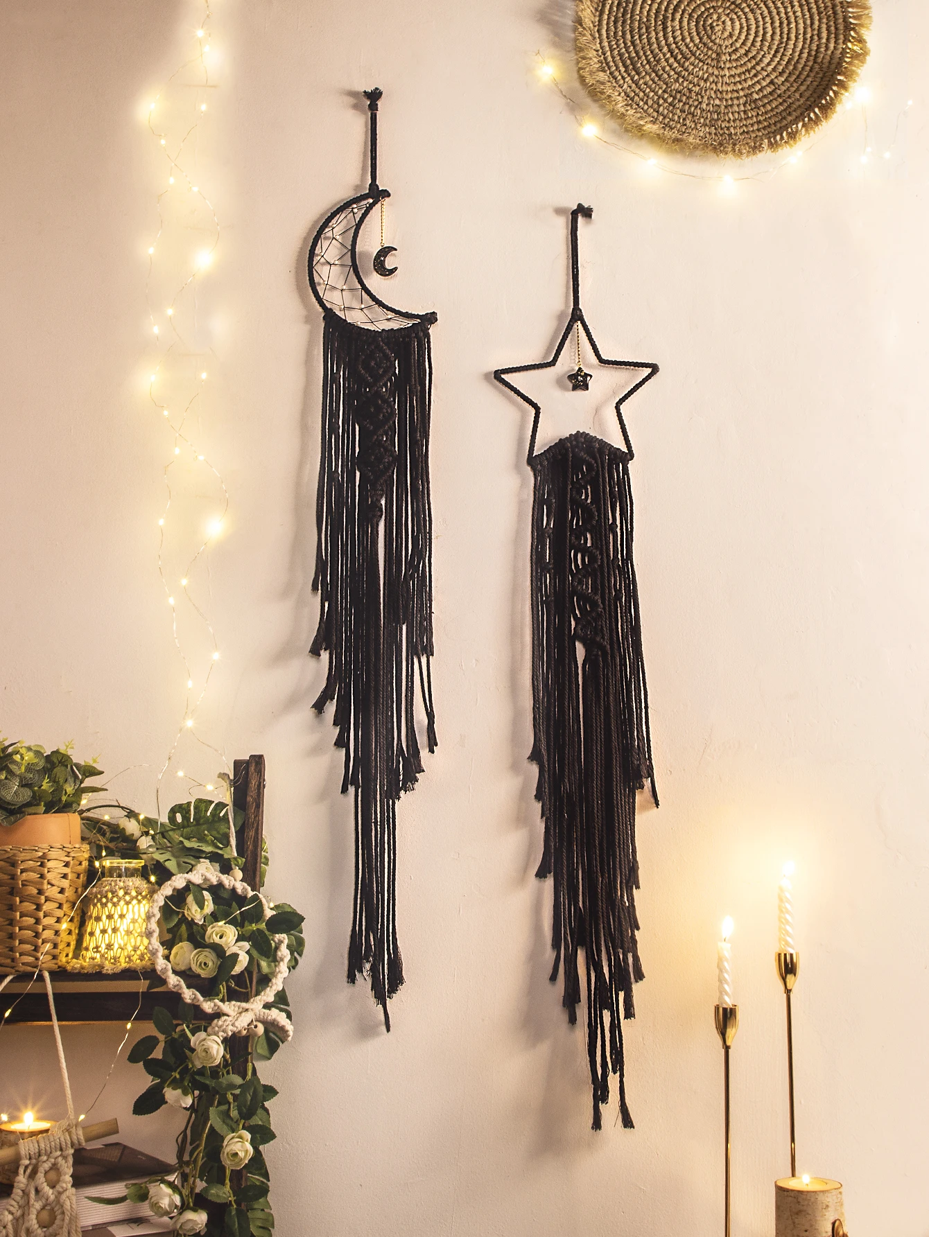 2Pcs Moon Star Macrame Dream Catcher Beige Pink Purple Tapestry Boho Home Decoration Macrame Wall Hanging Christmas Gift Kawaii