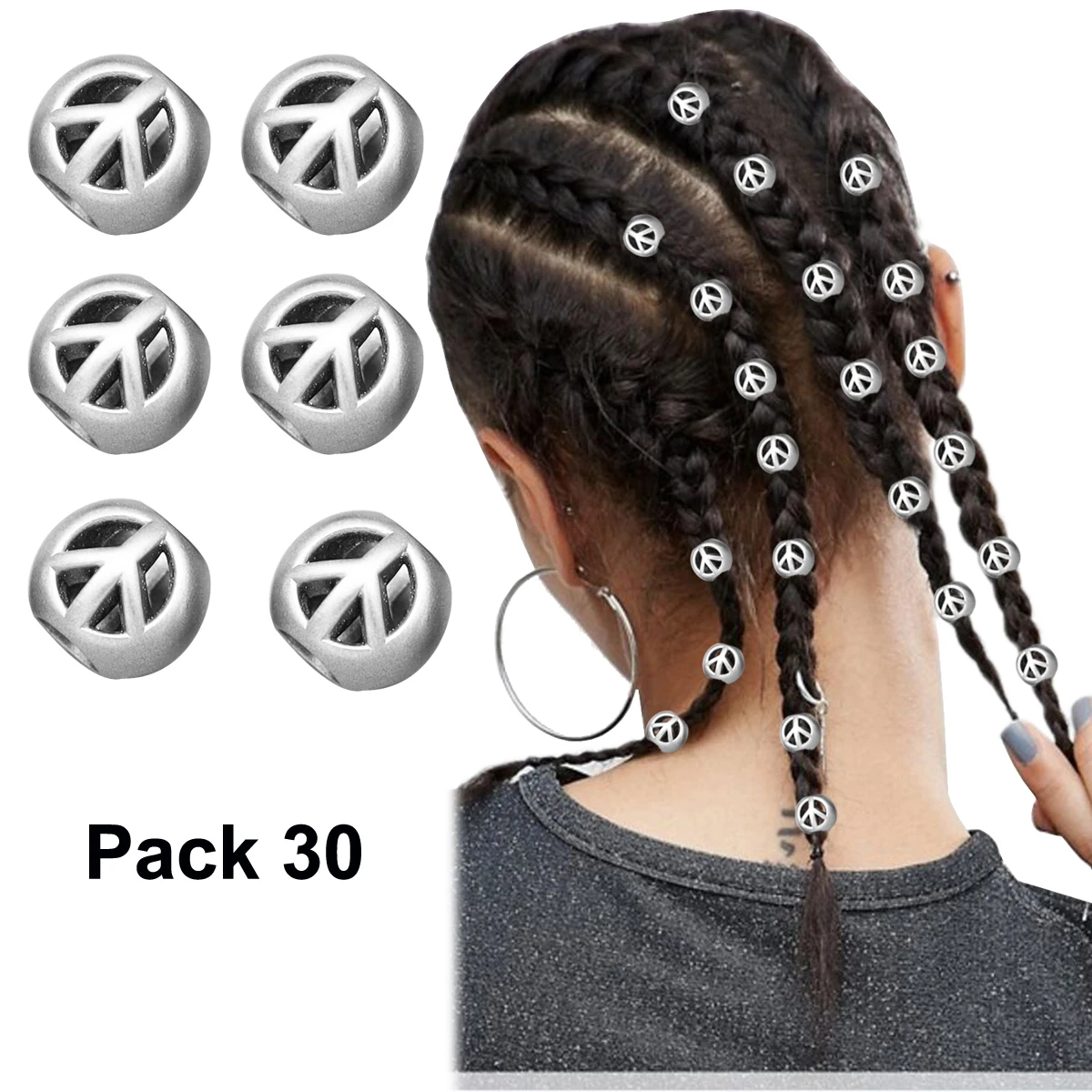 30x Viking Peace Sign Beard Bead Rasta Dreadlocks Updo Braid Hair Dress Clip Pin Set Biker Boho Women Accessories Statement Gift