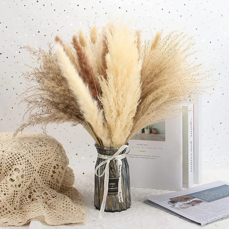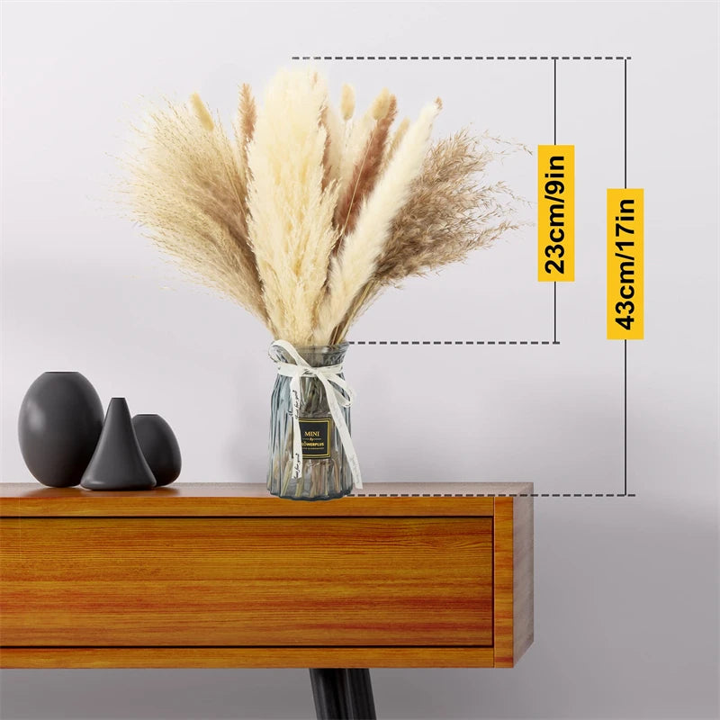 【Warm Tips】:The pampas grass bouquet gets squeezed during long journey from farm to your home. Before use, please leave the pampas grass under the sun for a few hours to fluff it up or use hair dryer at low heat to gently blow it. Because it is a pure natural plant, so there is a normal shedding phenomenon.