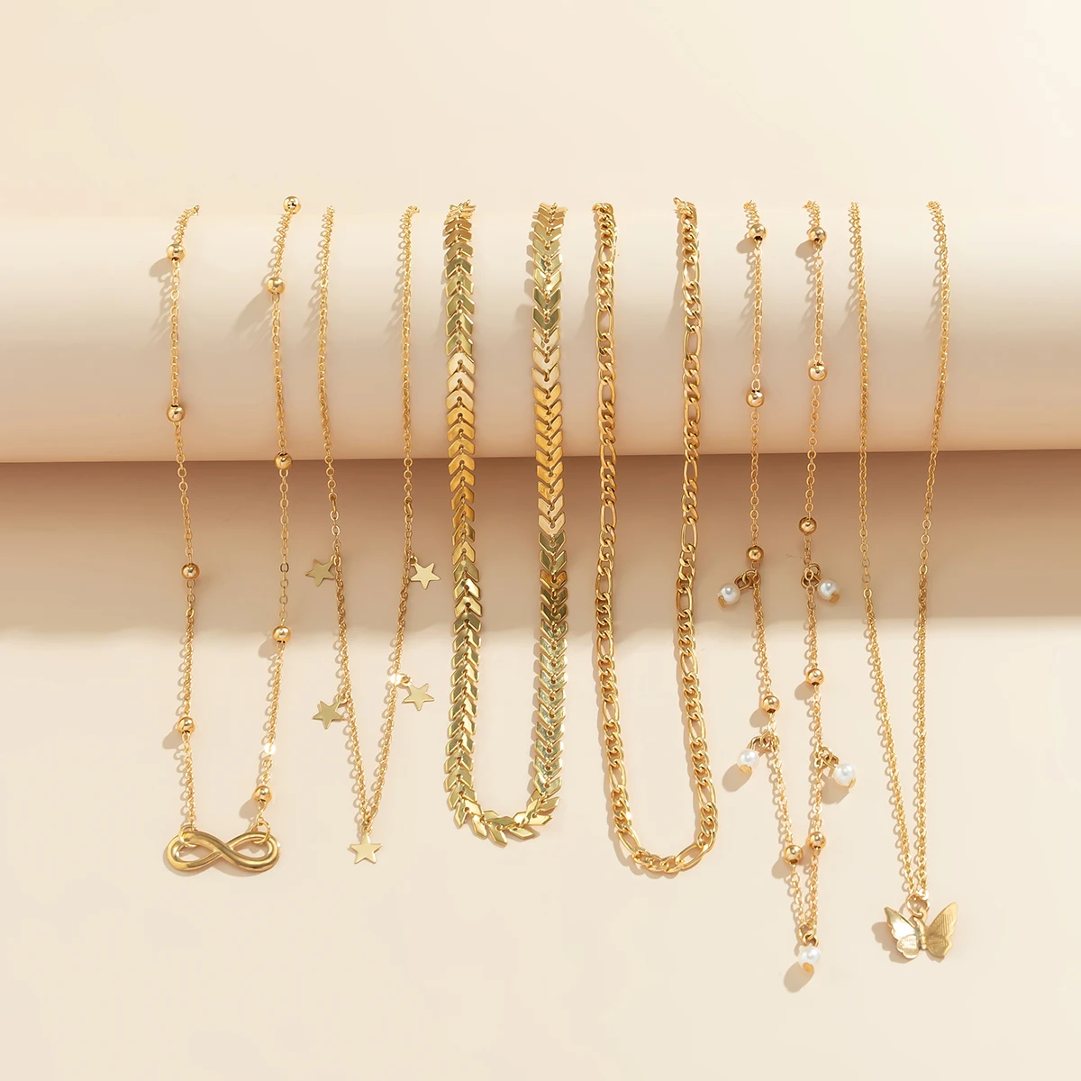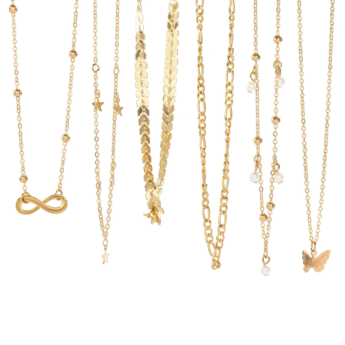 6Pcs/Set Boho Infinite Symbol Leaf Butterfly Pendant Necklace for Women Vintage Ethnic Imitation Pearl Thin Chain Party Jewelry