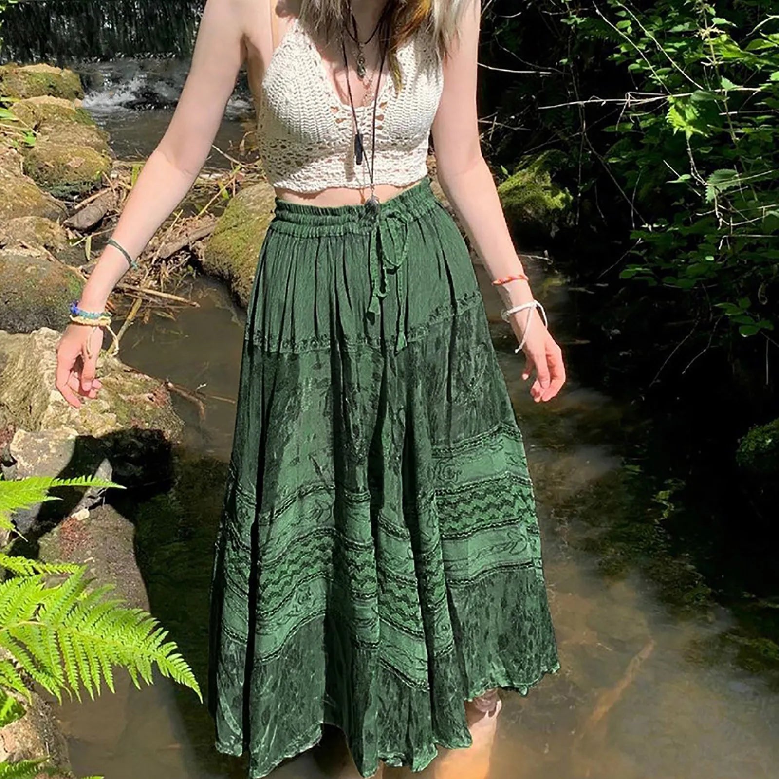 Autumn Vintage Retro Long Skirt Drawstring High Waisted Large Swing A Line Skirt Hip Hop Gothic Korean Y2k Flowy Boho Skirt