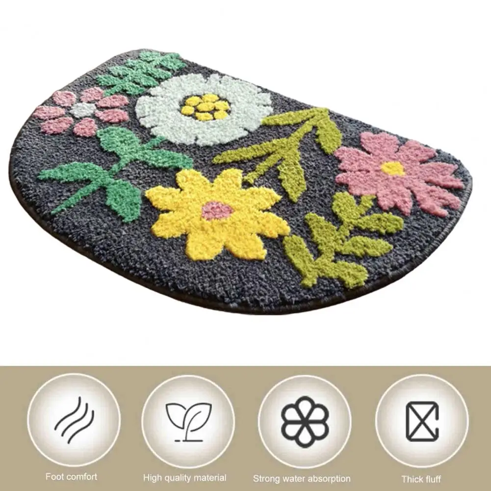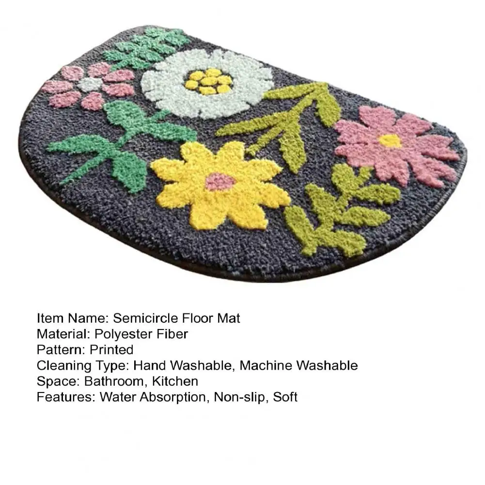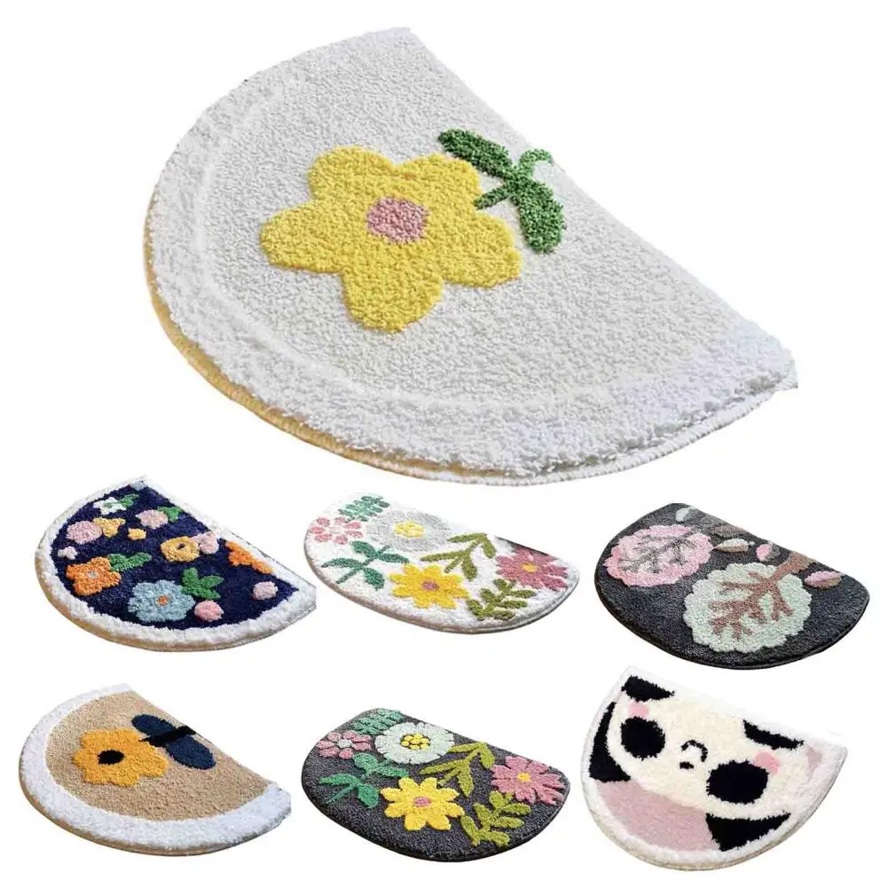 Bathroom Rugs Boho Flower Cartoon Panda Pattern Semicircle Floor Mat Thick Water Absorbent Non-slip Rug for Bathroom Kitchen
