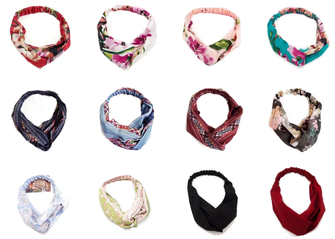 wide headbands one size fit most, elastic, very soft and stretchy.Making from chiffon, georgette or silk material. Provide excellent performance for absorbency, wicking, durability and abrasion resistance.These lovey headwraps are great to wear in sport or daily fashion outfits, Pilates or Crossfit class, or go jogging/biking with your friends. Bohemia style flower printing make the boutique headbands charming and elegant!Package: 1 pcs headbands.