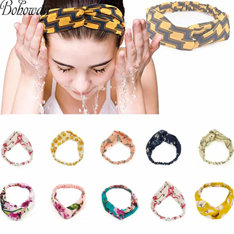 BOHOWAII Bandeau Cheveux Hair Band for Women Wide Head Wraps Knotted Elastic Teen Girls Yoga Workout Diademas Boho Chic Bandana