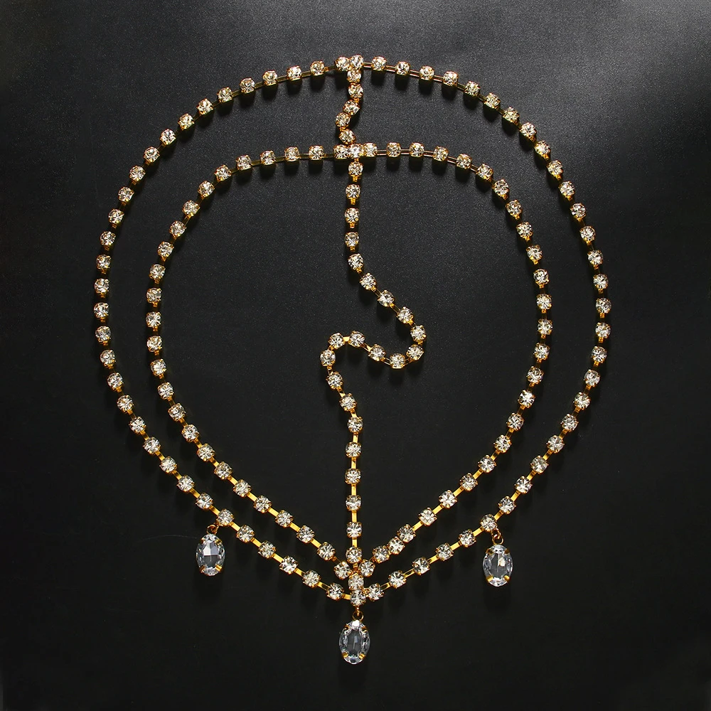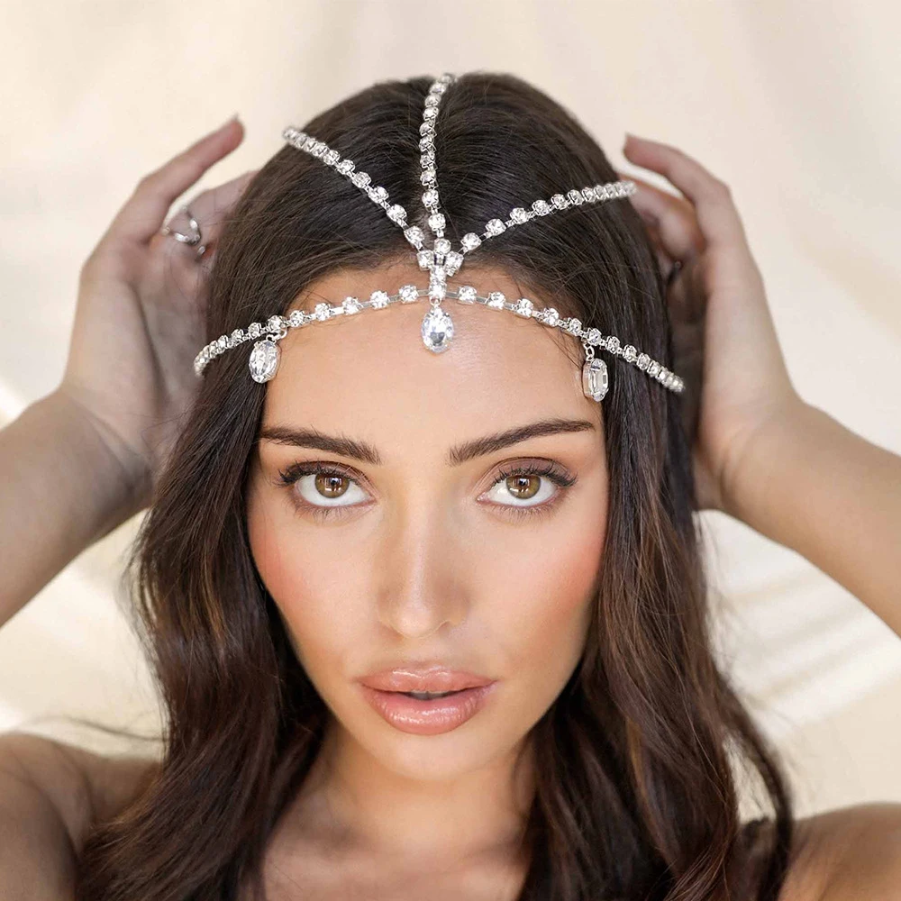 Bridal Multilayer Head Chain Headpiece Indian Hair Accessories Boho Fashion Water Drop Rhinestone Forehead Chain Cap for Women