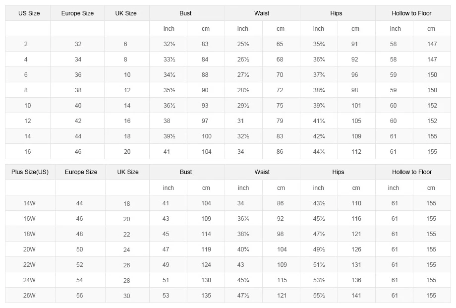 .If you want to custom made dress,please leave a message to us about your detailed size bust___,waist___,hips___,hollow to floor without shoes___,High Heels you will wear inch or___cm, and measure yourself as our measuring instruction below.