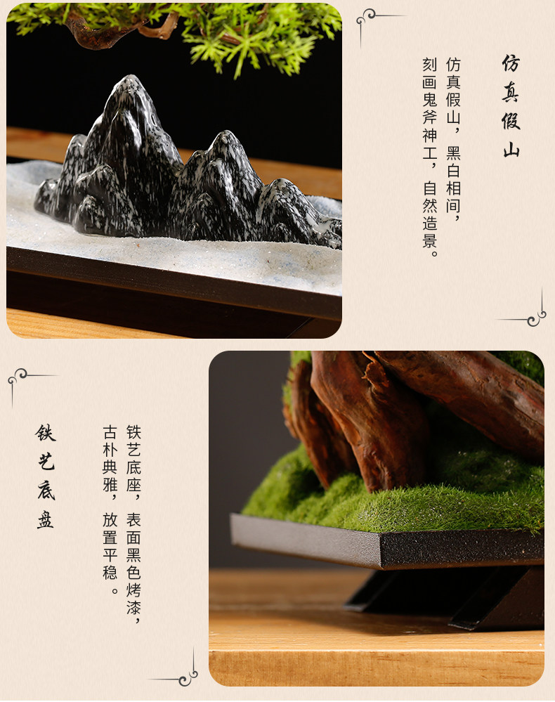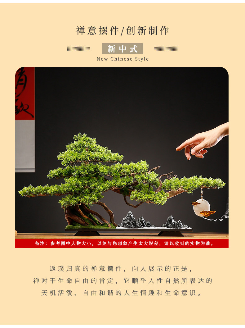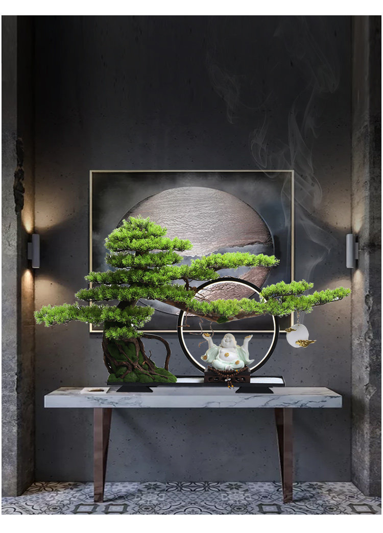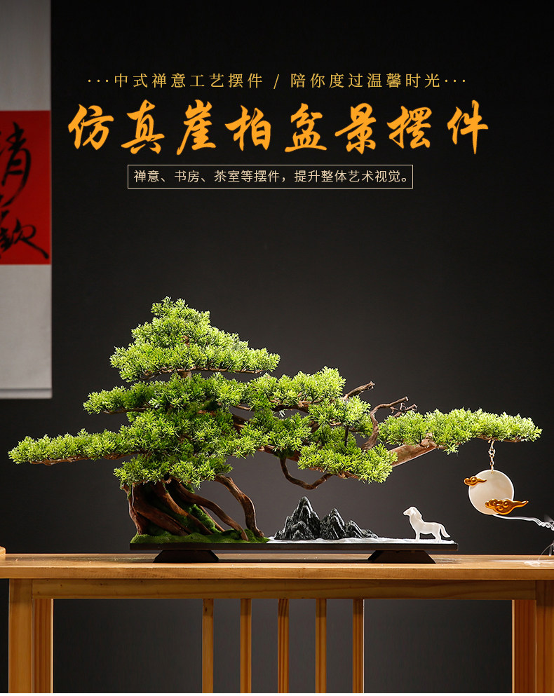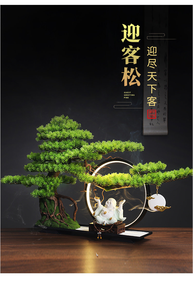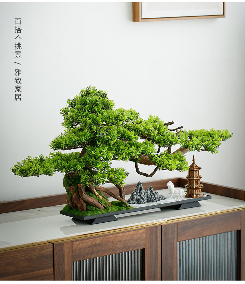 Chinese Style Living Room Bonsai Artificial Greeting Pine Green Plant Landscape Decoration Office Indoor Bonsai Hallway Desktop Decoration