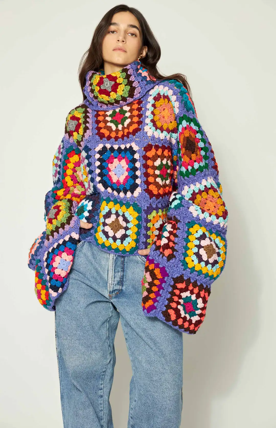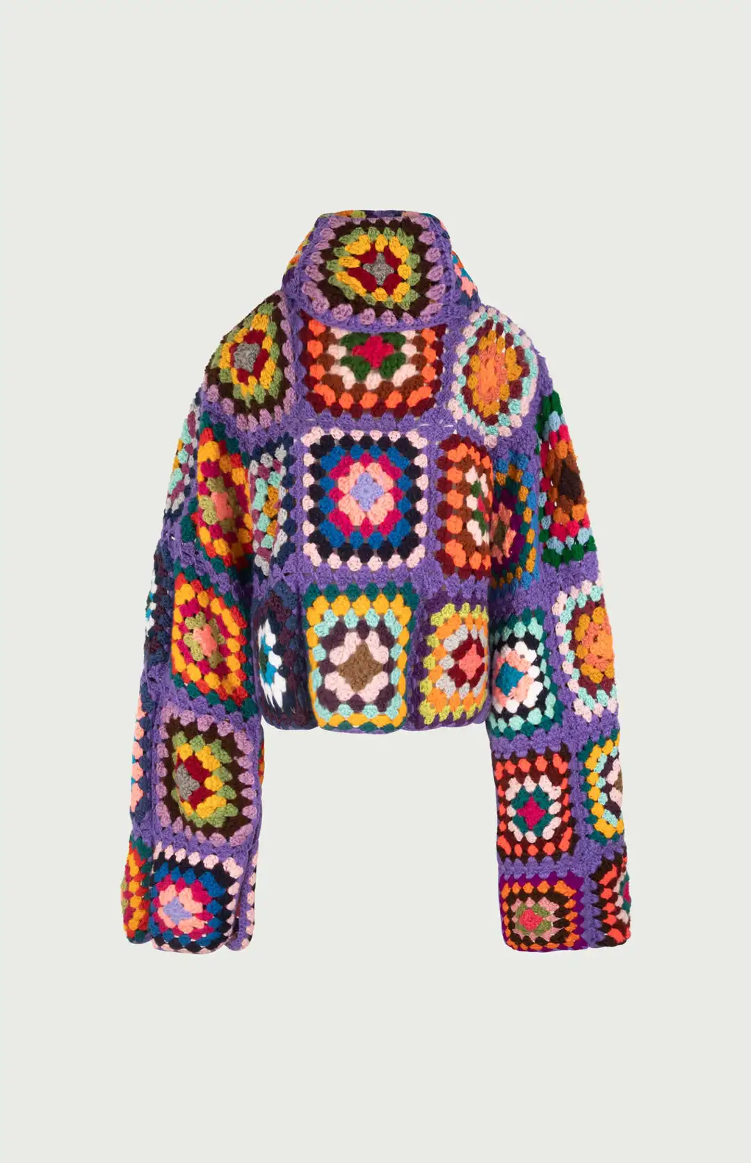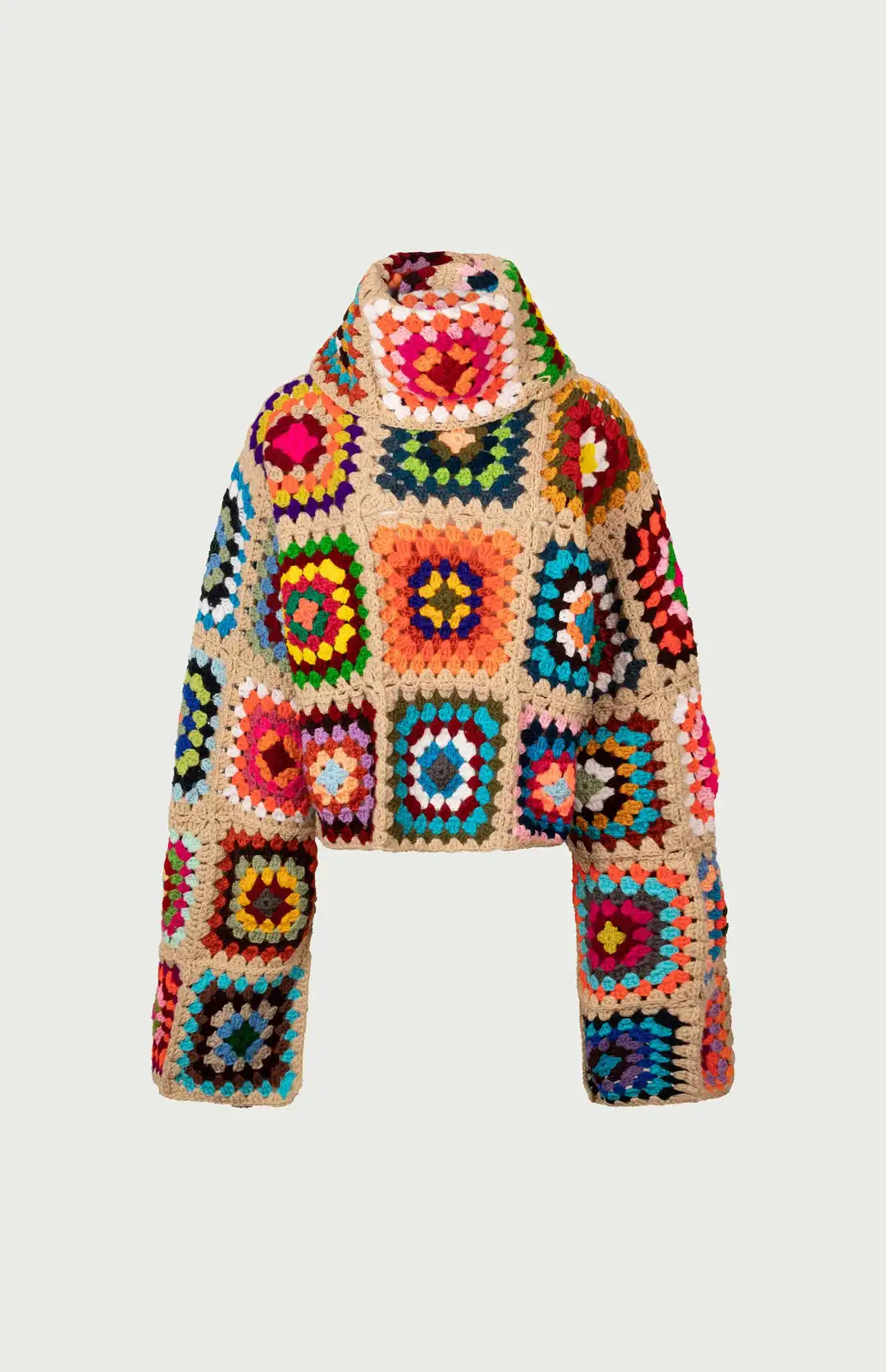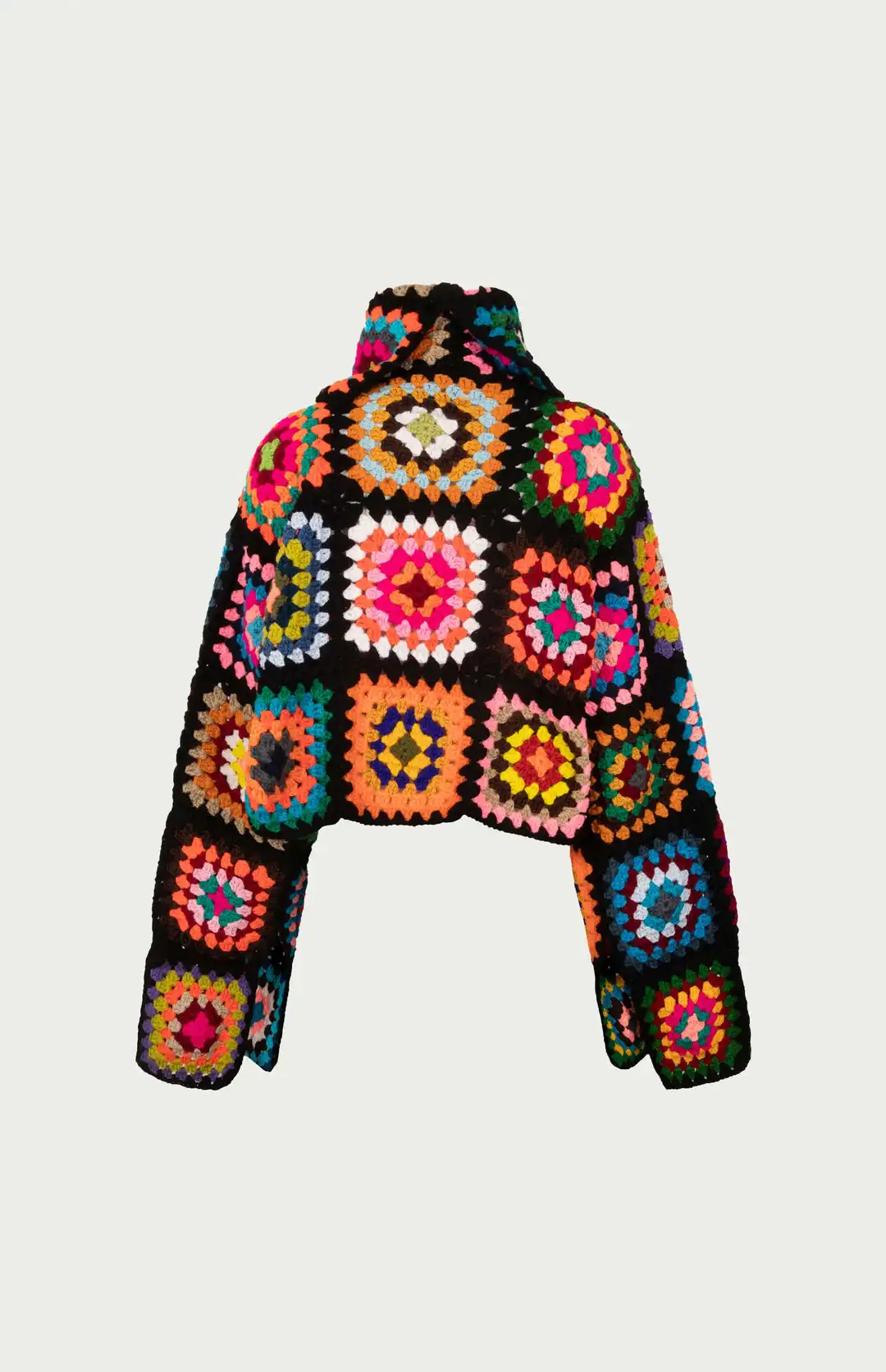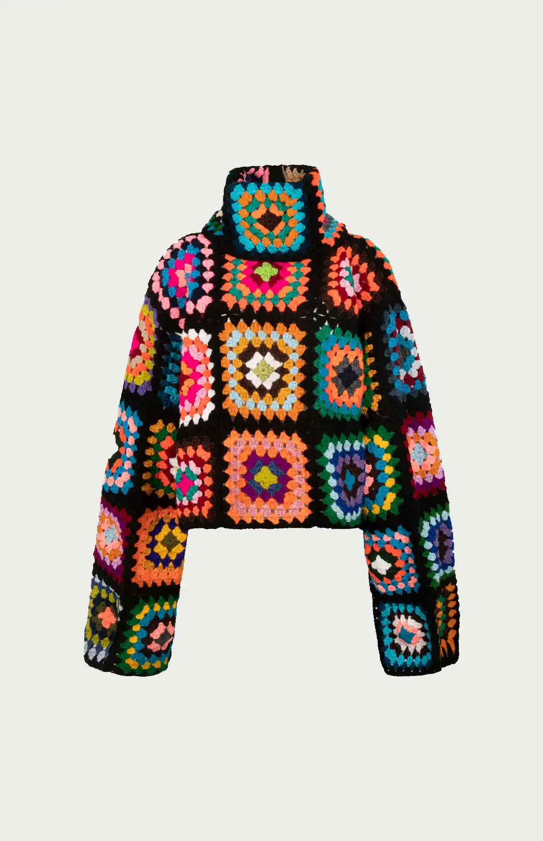 Colorful Crochet Sweaters Granny Square Turtleneck Cute Cardigan Boho Afghan Stitching Coat Color Patchwork Clothing For Lady