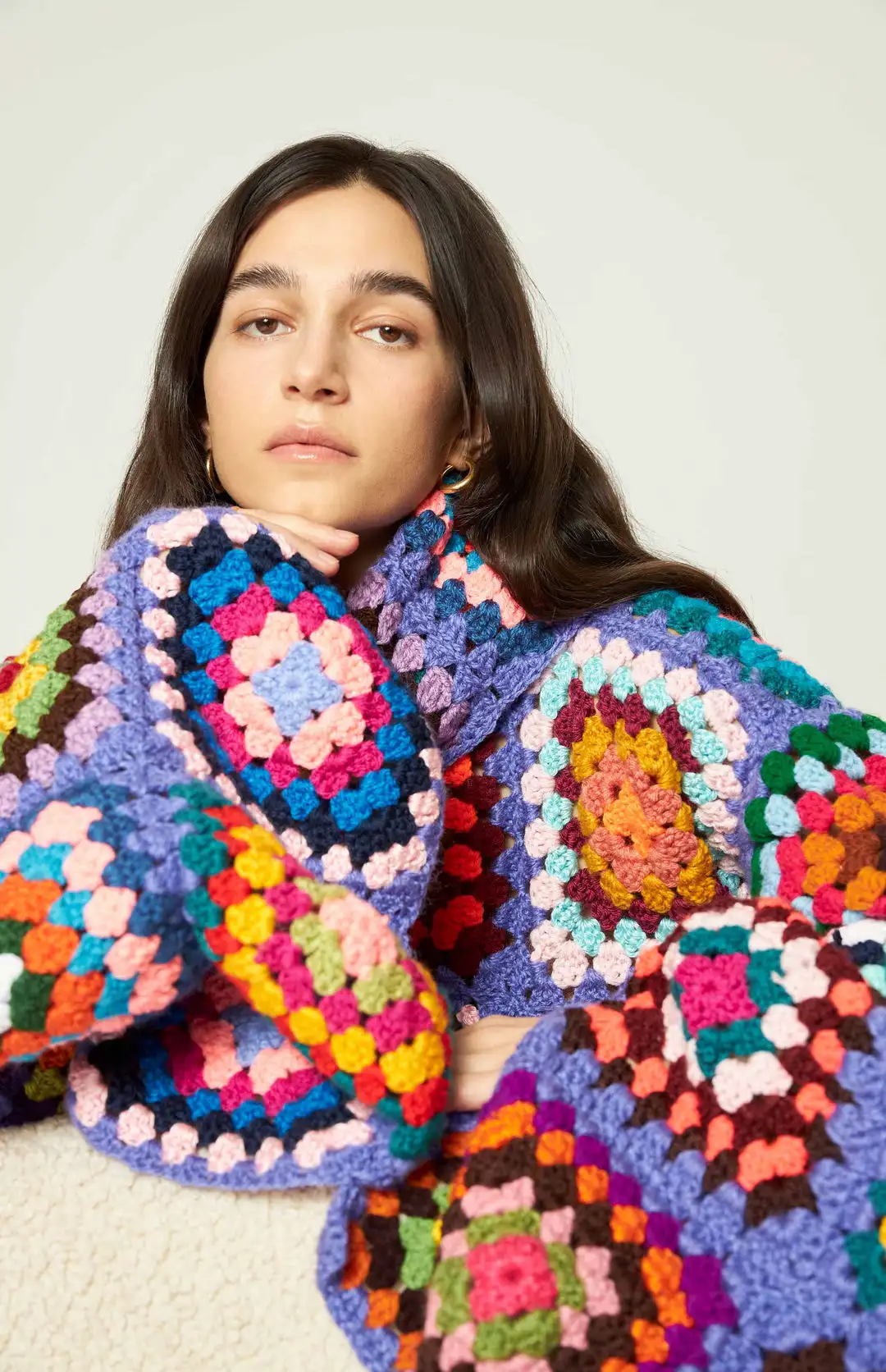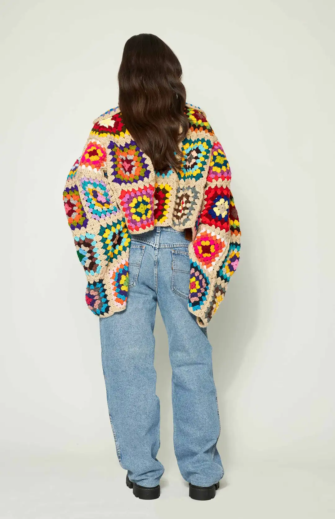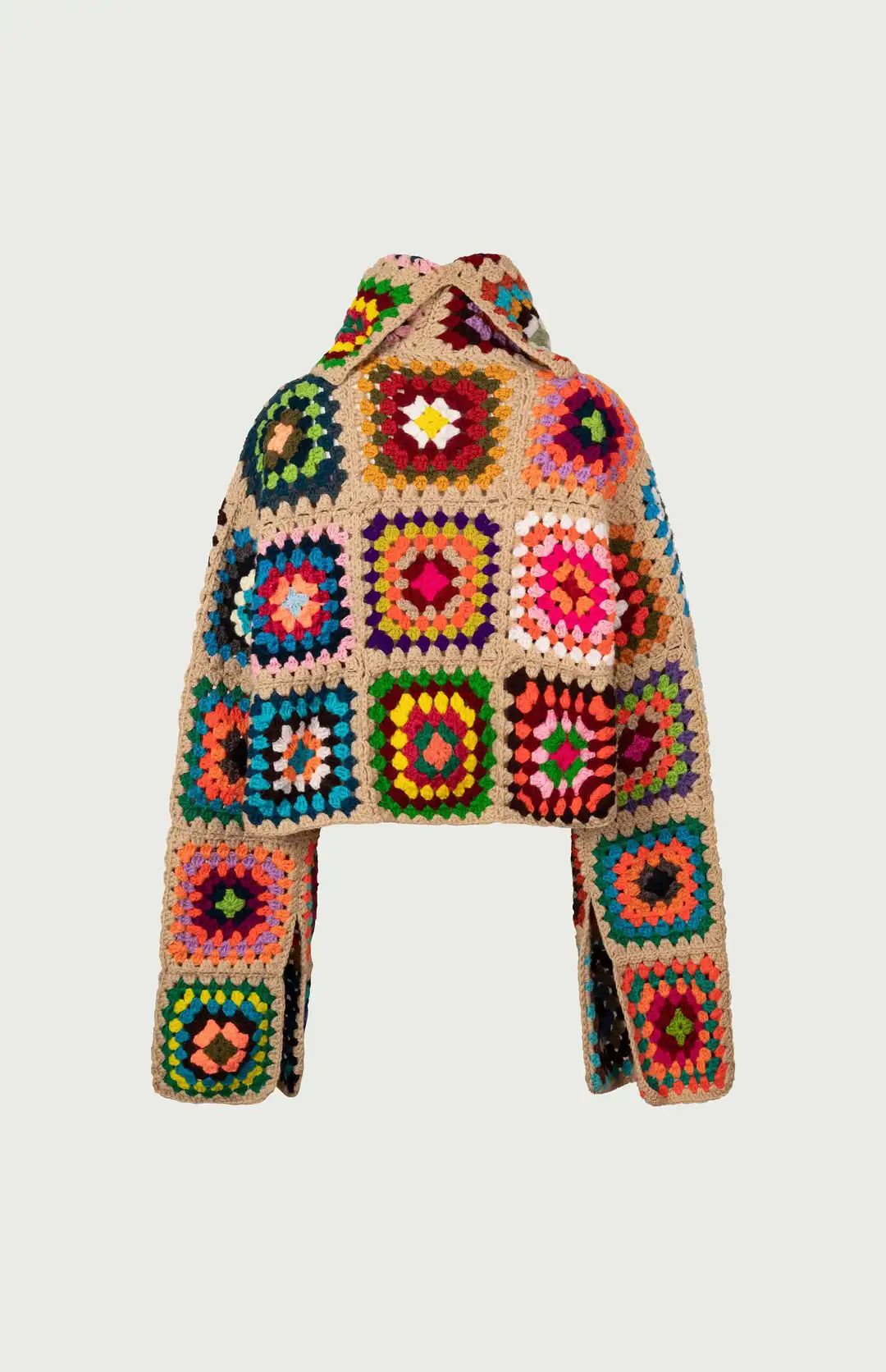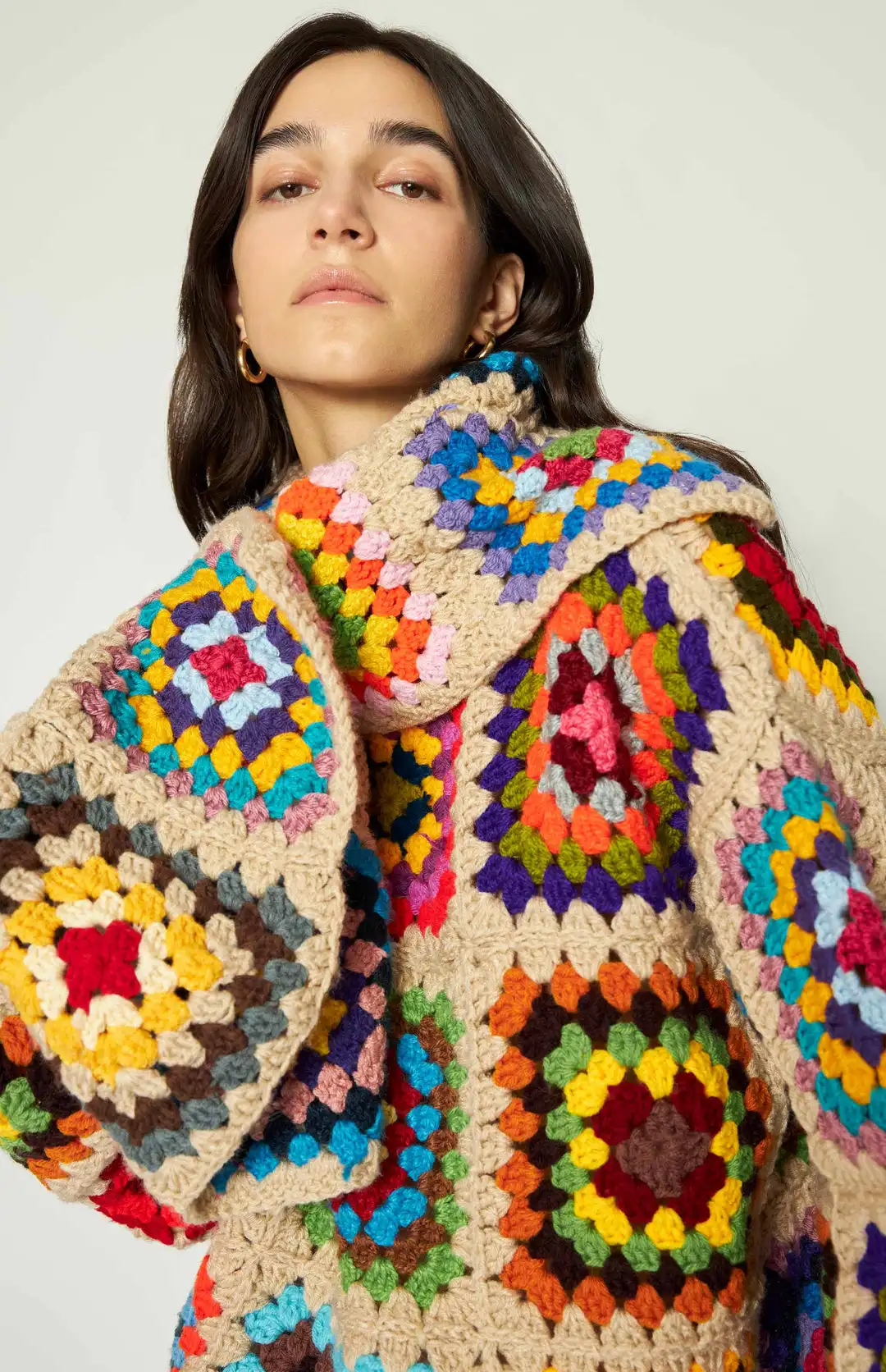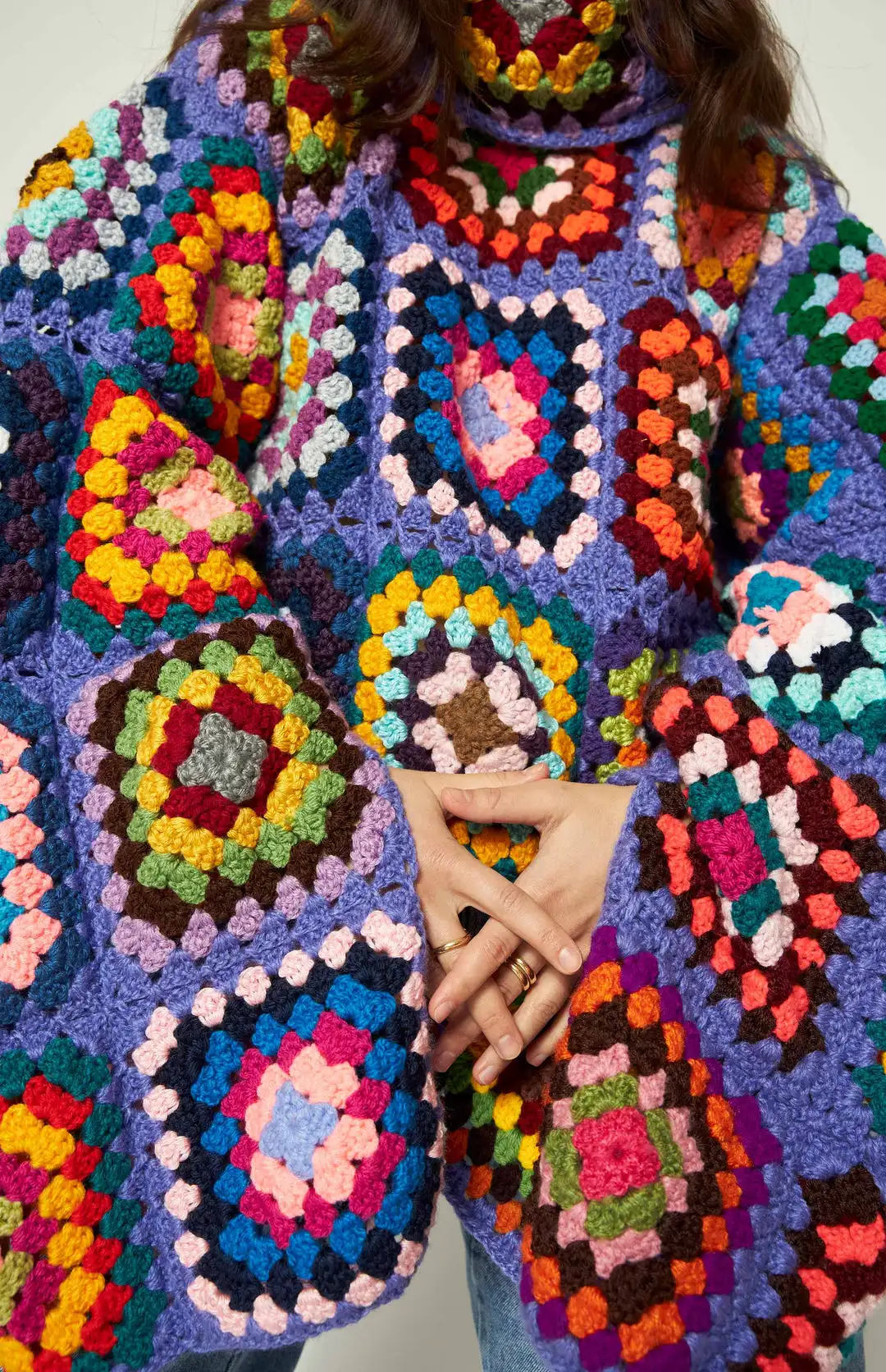 Colorful Crochet Sweaters Granny Square Turtleneck Cute Cardigan Boho Afghan Stitching Coat Color Patchwork Clothing For Lady