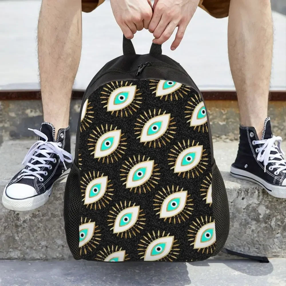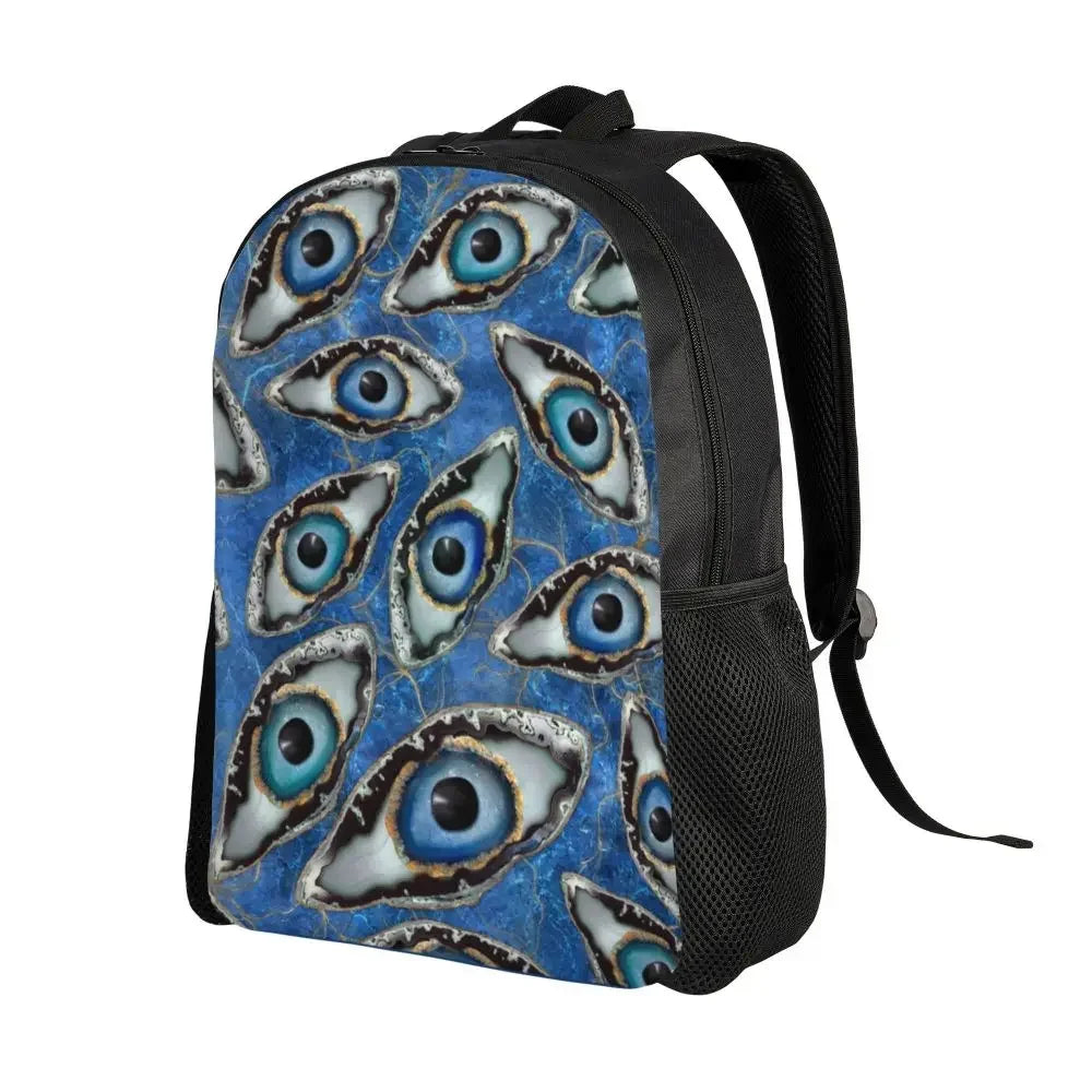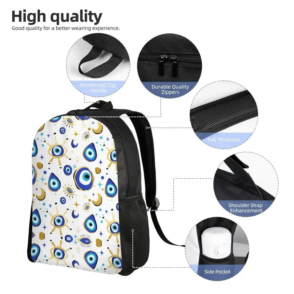 Custom Navy Blue White Mediterranean Evil Eye Mandala Pattern Backpacks Men Casual Bookbag for School College Bohemian Boho Bags