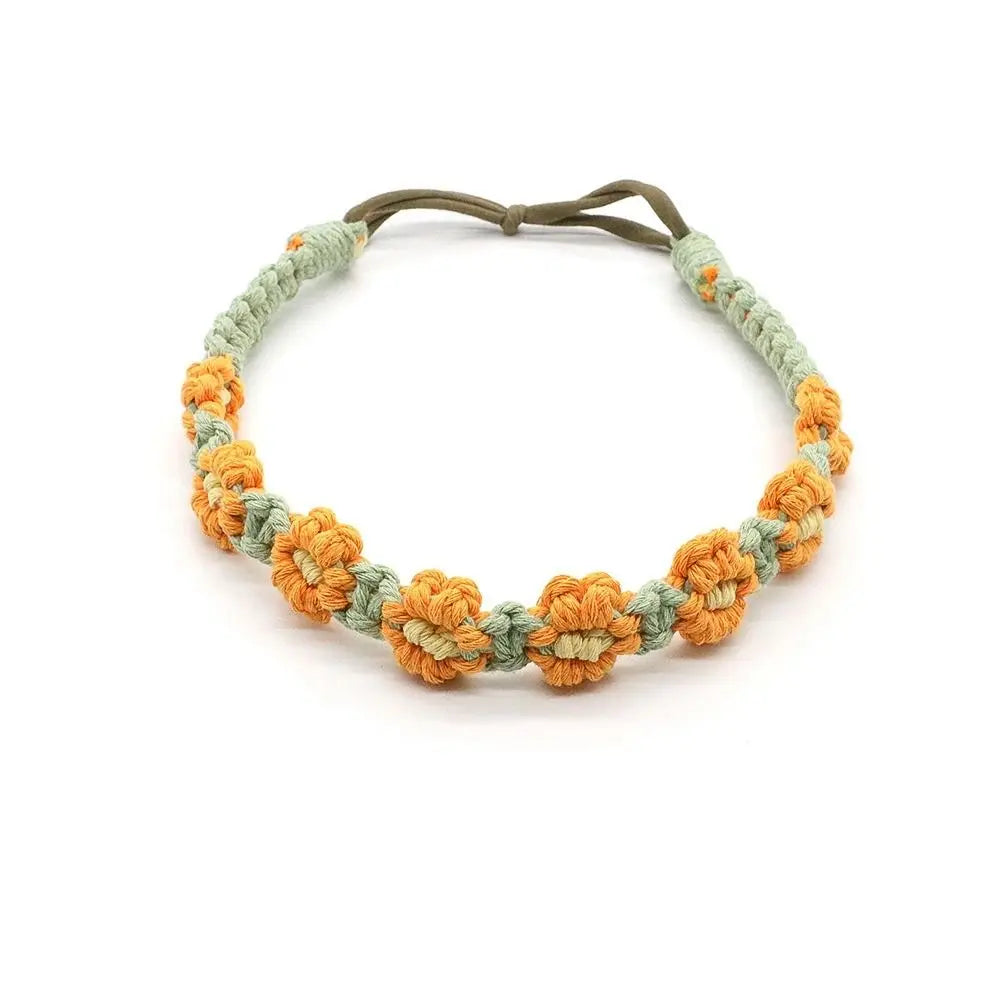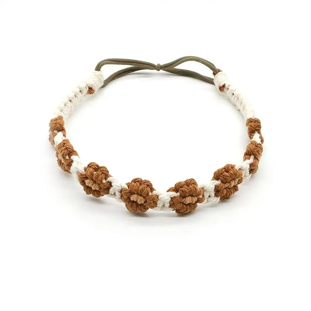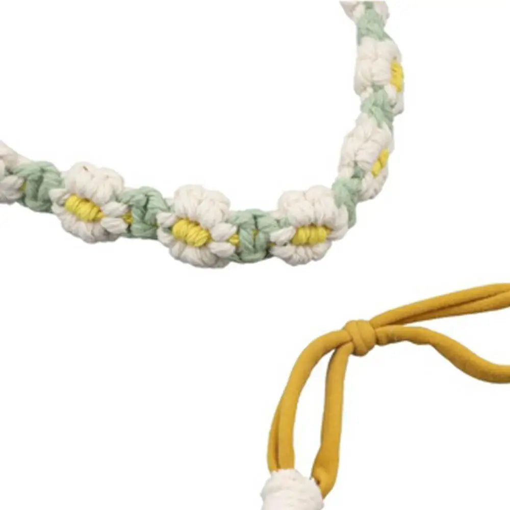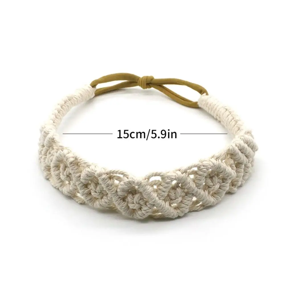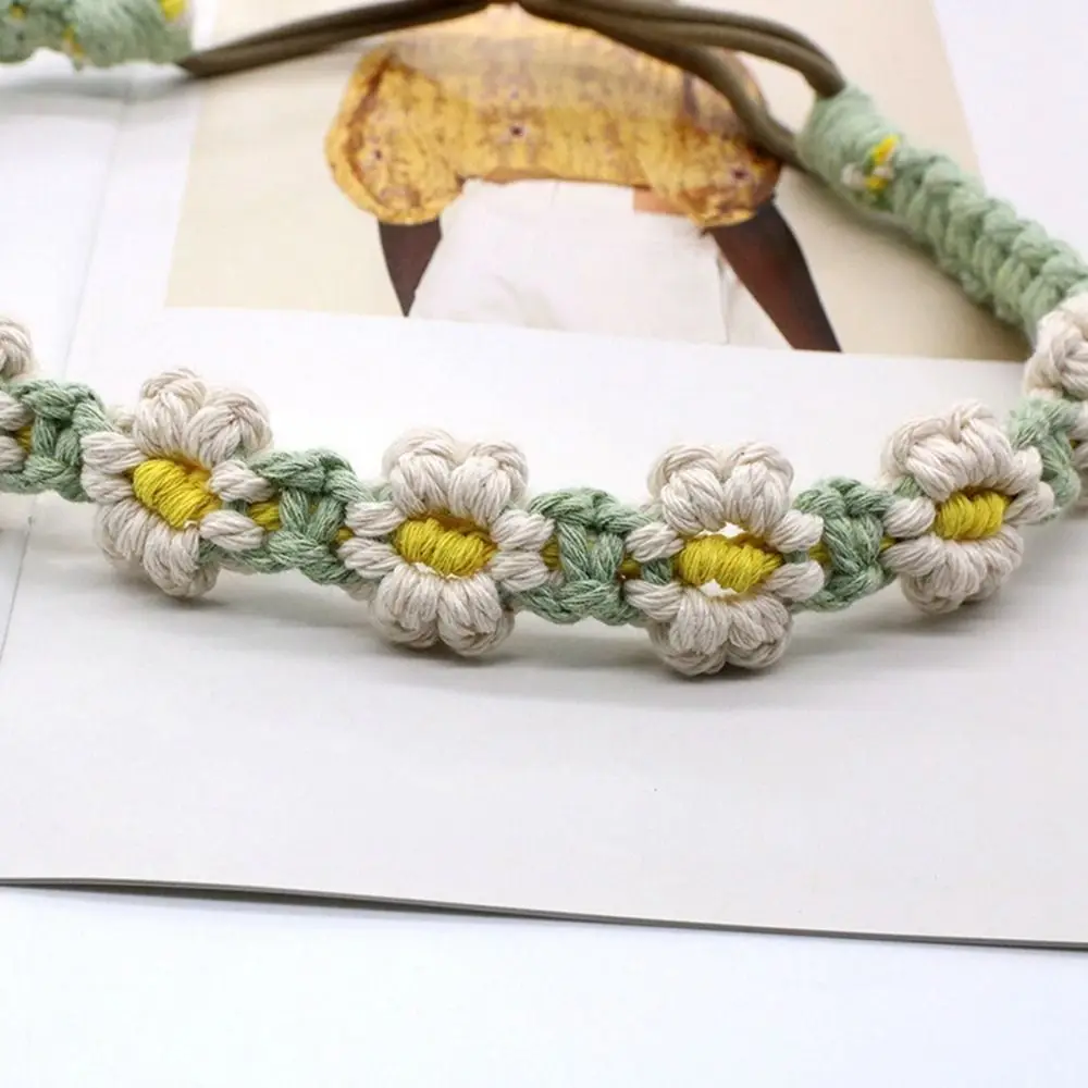 Cute Ethnic Style Flower Turban Headwrap Braided Rope Bohemian Headband Macrame Hair Band Women Hair Scarf Crochet Bandana