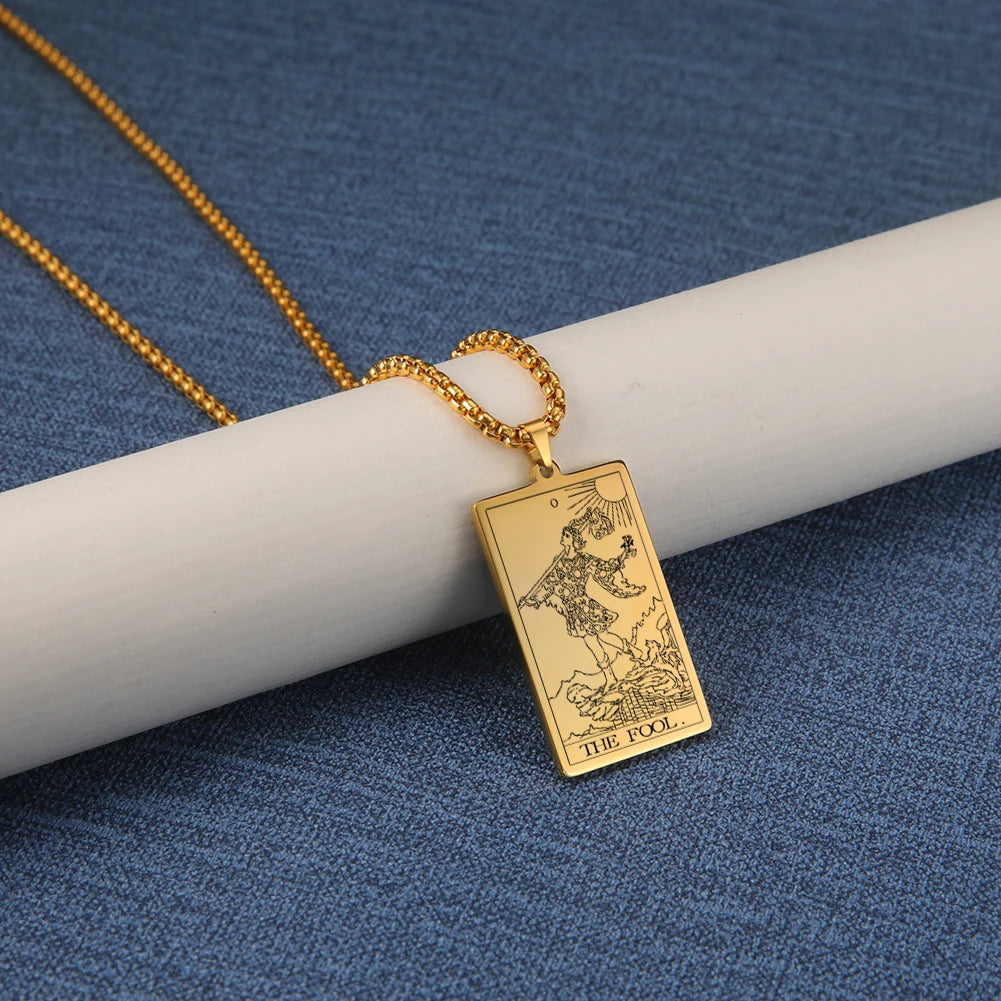 Dawapara The Major Arcana Tarot Cards Vintage Amulet Pendant Necklaces Box Chain Men Jewelry Stainless Steel Golden Black