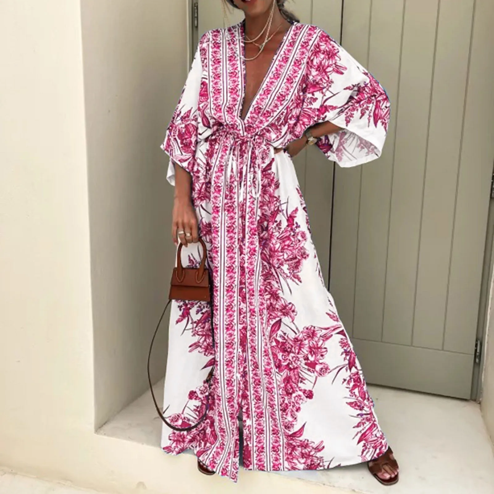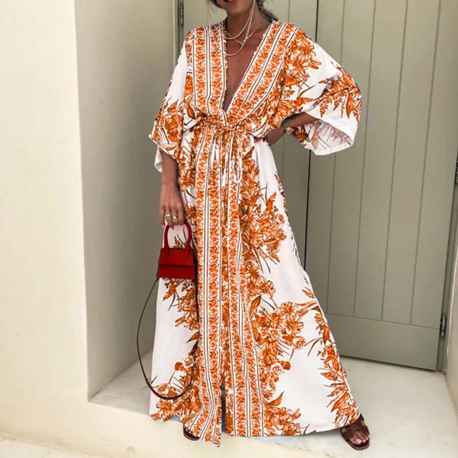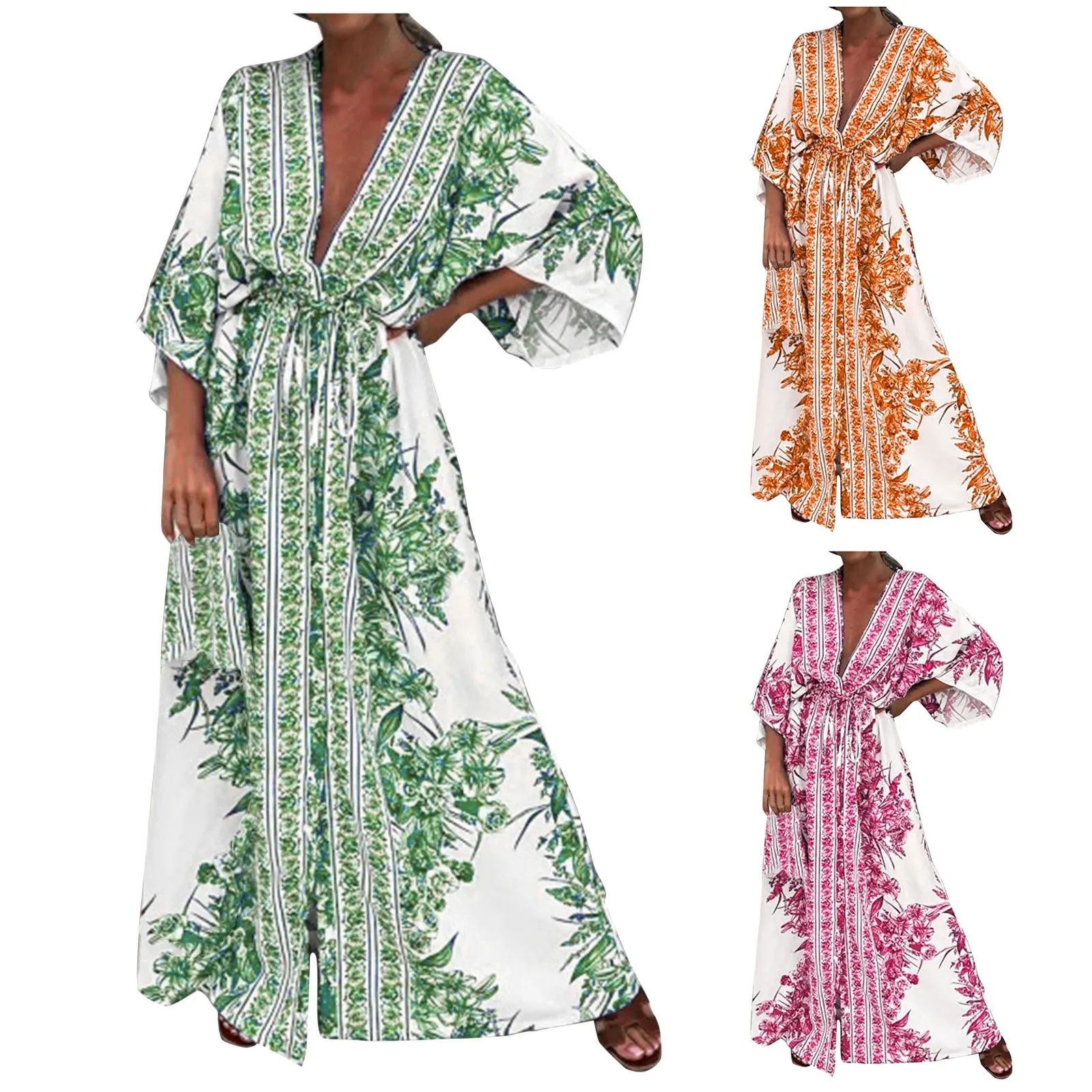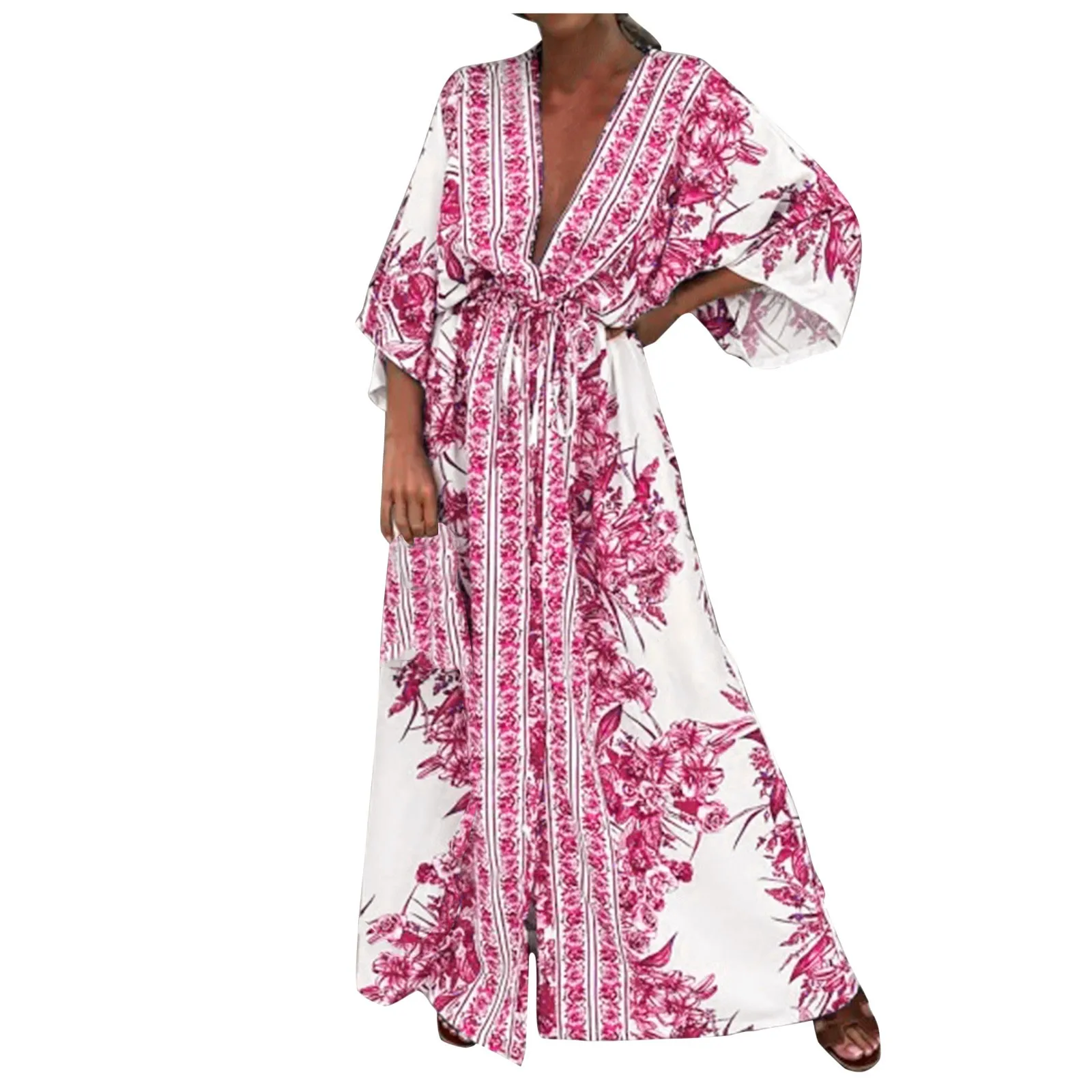 Dresses For Women 2024 Wedding Guest Boho Print Half Sleeve Dress Women Fashion Japanese Kimono Cardigan Vintage Woman Clothing