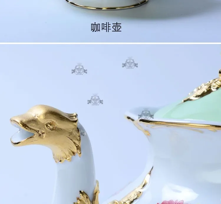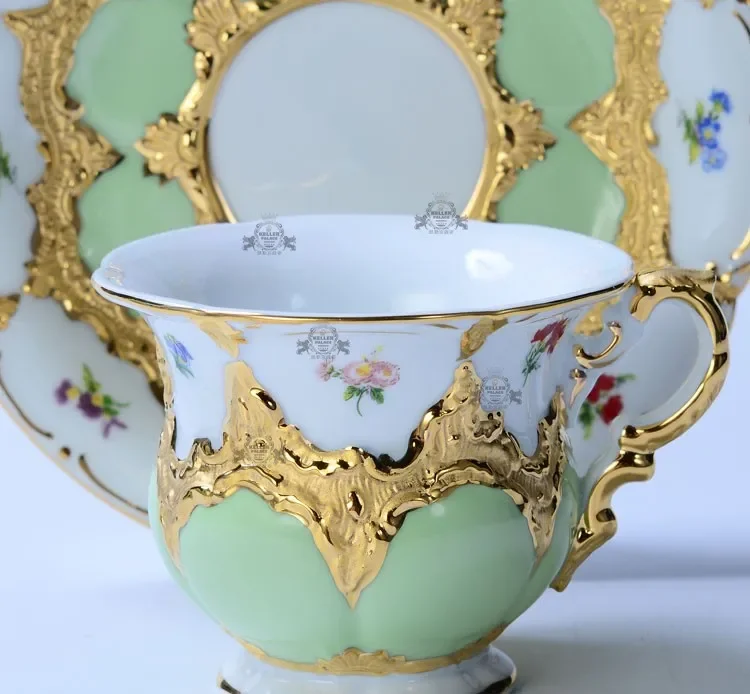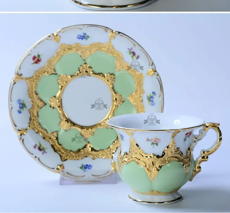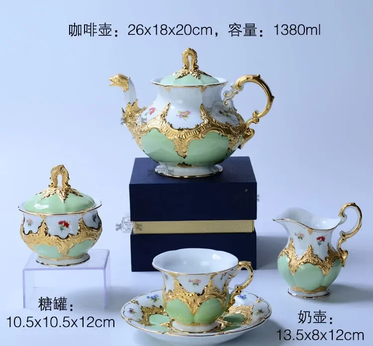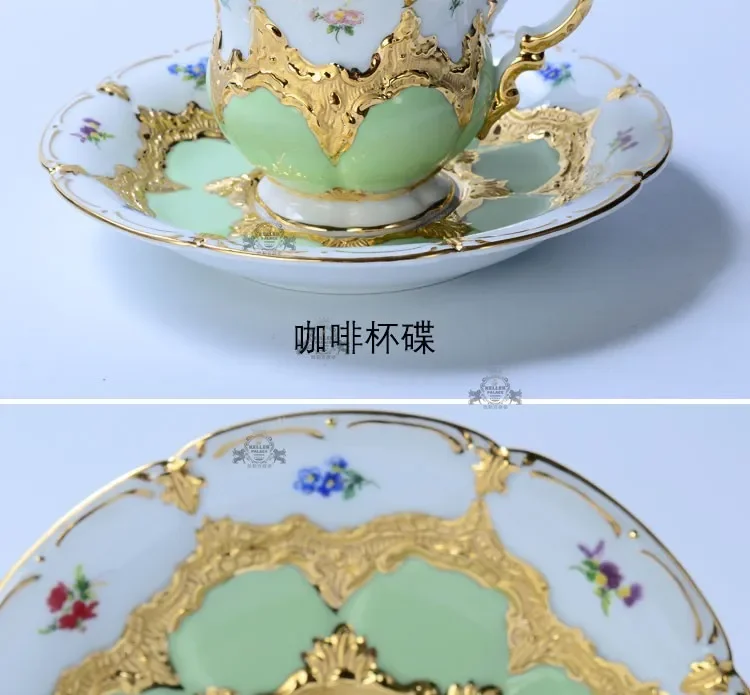 European-Style Meijia Coffee Set Palace Relief Gold Painting M Sen B- Form Cream Green Tea Set Coffee Set Turkish Coffee Set