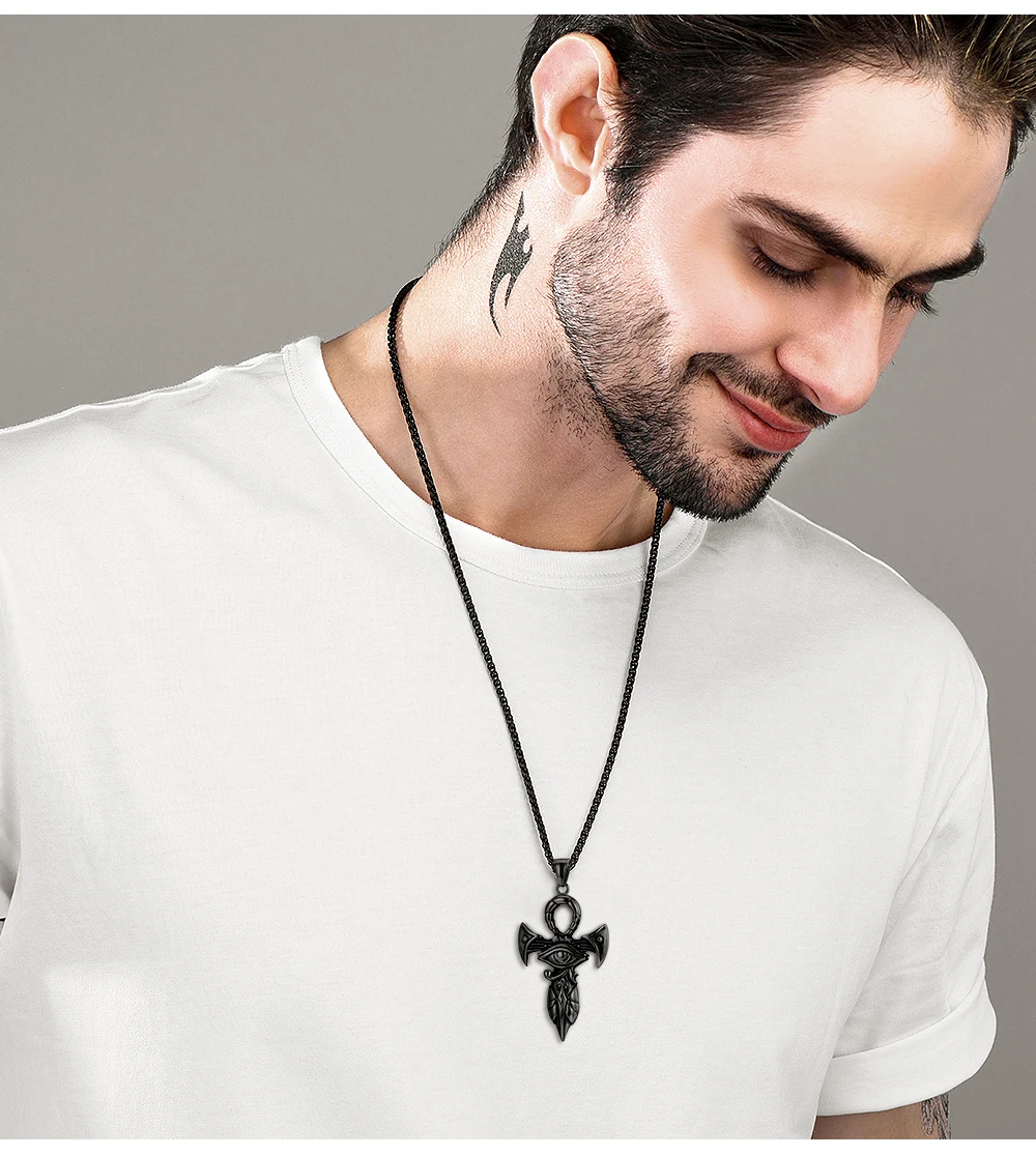 Eye of Horus Pendant Necklace Gold/Stainless Steel Pharaoh Protection Amulet Necklace Ankh Cross Egyptian Jewelry GP3319
