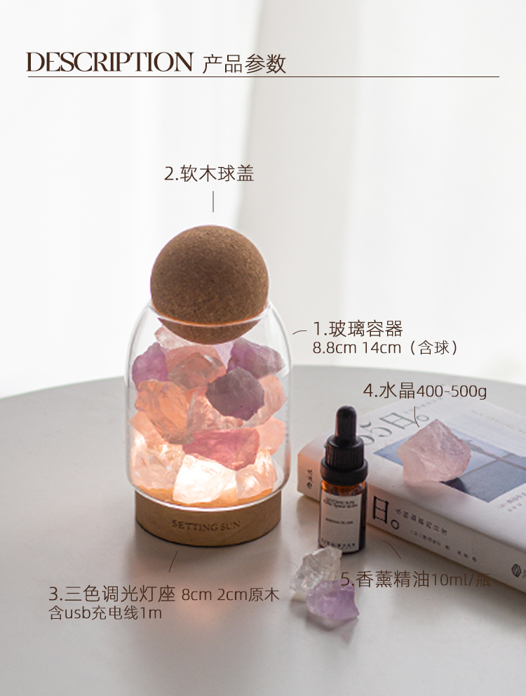Fire-Free Aromatherapy Crystal Small Night Lamp Fragrant Stone Aromatherapy Oil Decoration Indoor Long-Lasting Aromatherapy Gift Box Gift