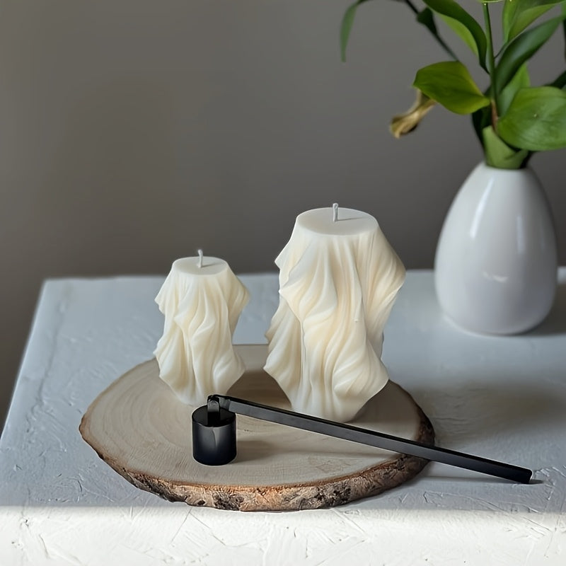 [Holiday Cheer, Aromatherapy Candle] Relaxing Spice Scent Handmade Soy & Beeswax Aromatherapy Candle - Modern Irregular Shape, Indoor/Outdoor Use, Minimalist Elegance, Geometric Wave Design, Scented Candles, Holiday Cheer