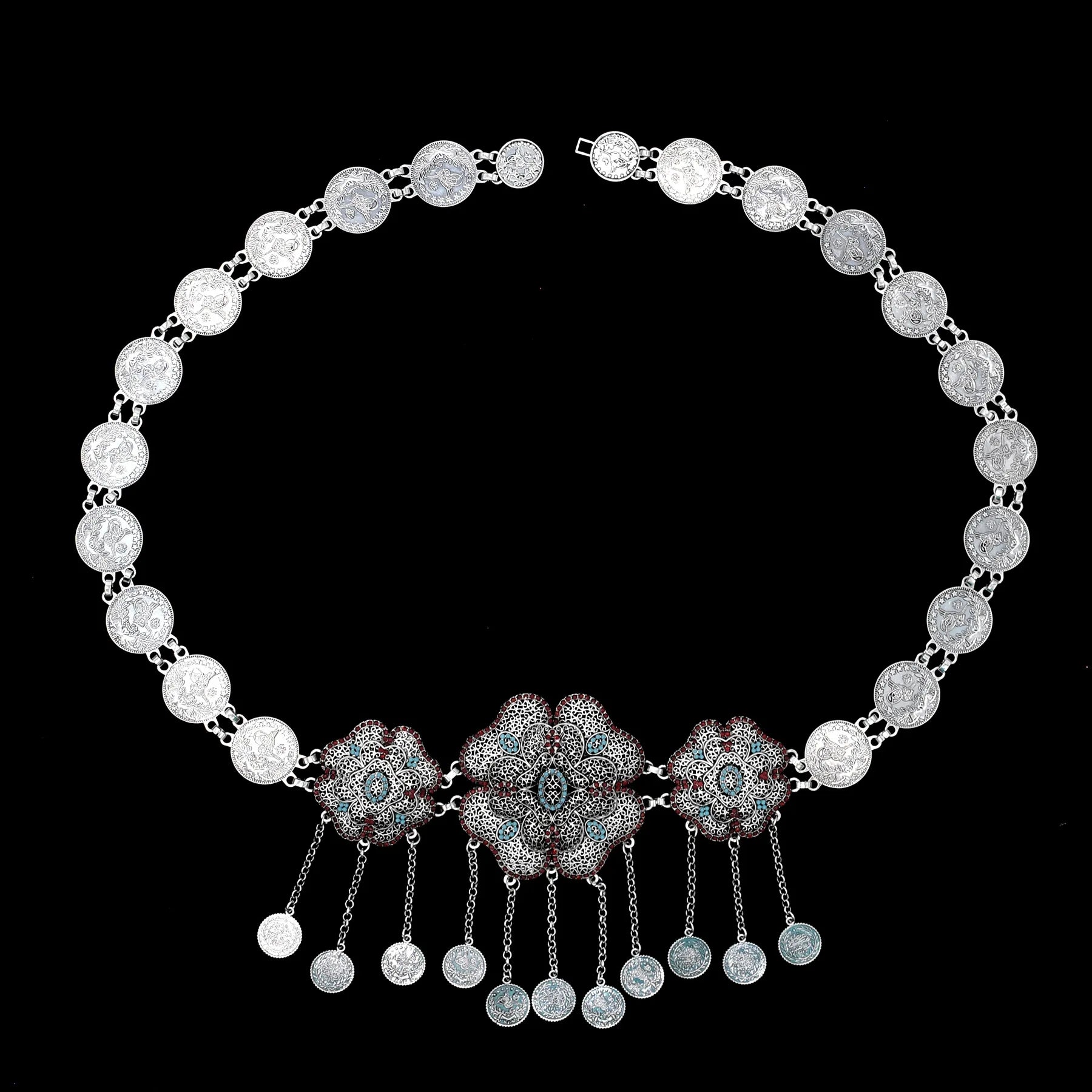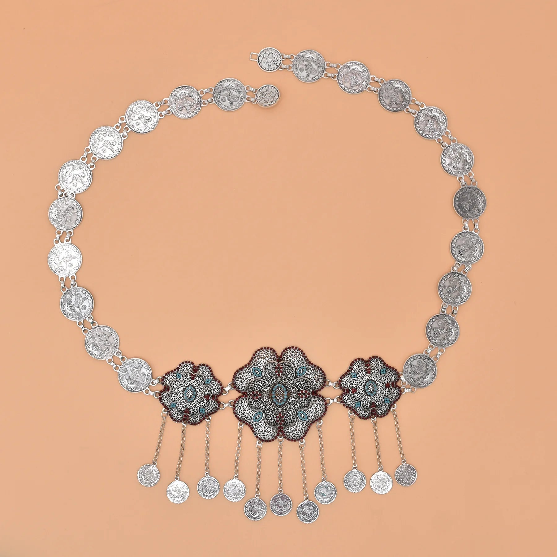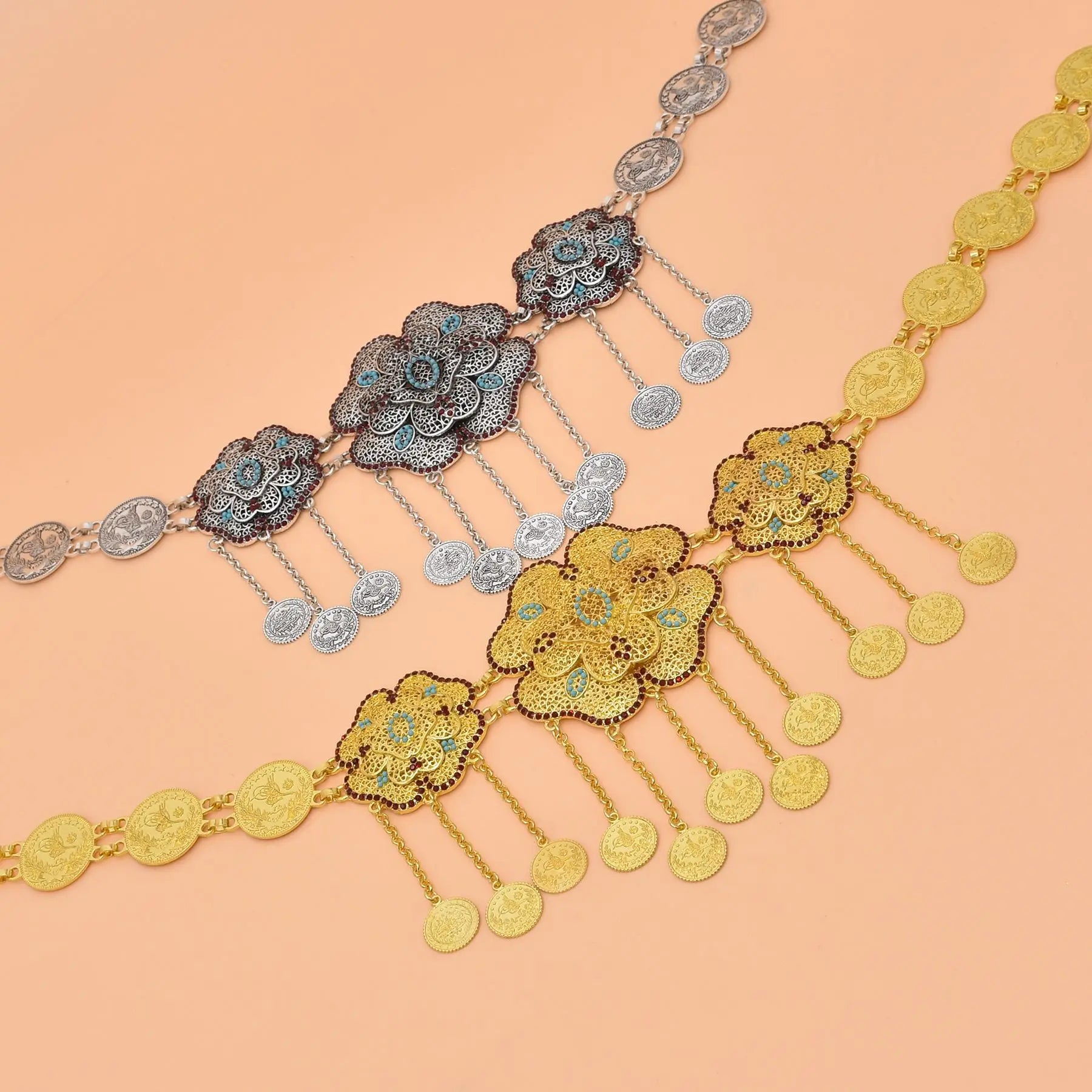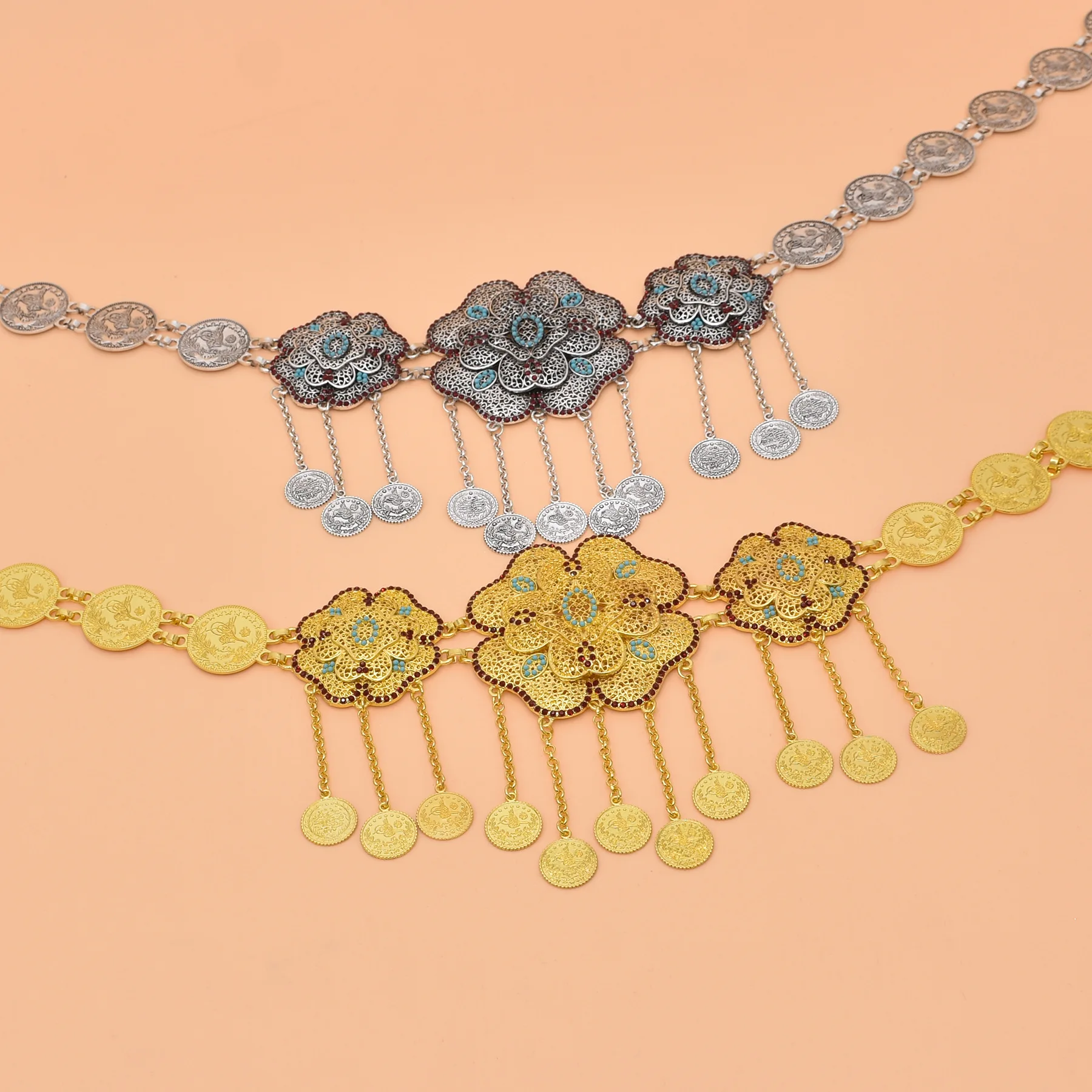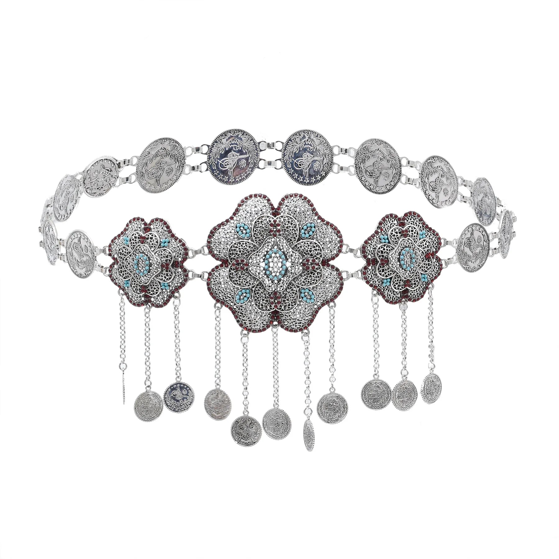 Hollow Out Flower Coins Chain Pendant Belt for Women Rhinestone Waist Chains Jewelry India Gypsy Dance Dress Accessories Gift