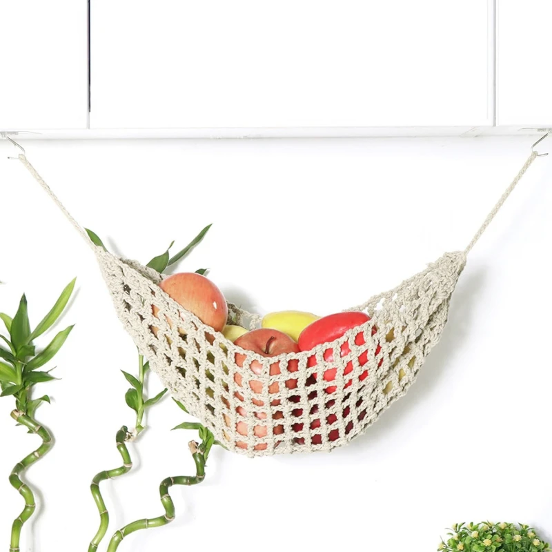 Macrame Handwoven Fruit Hammock Banana Holder Boho Cotton Rope Hanging Net Basket Home Kitchen Under Cabinet