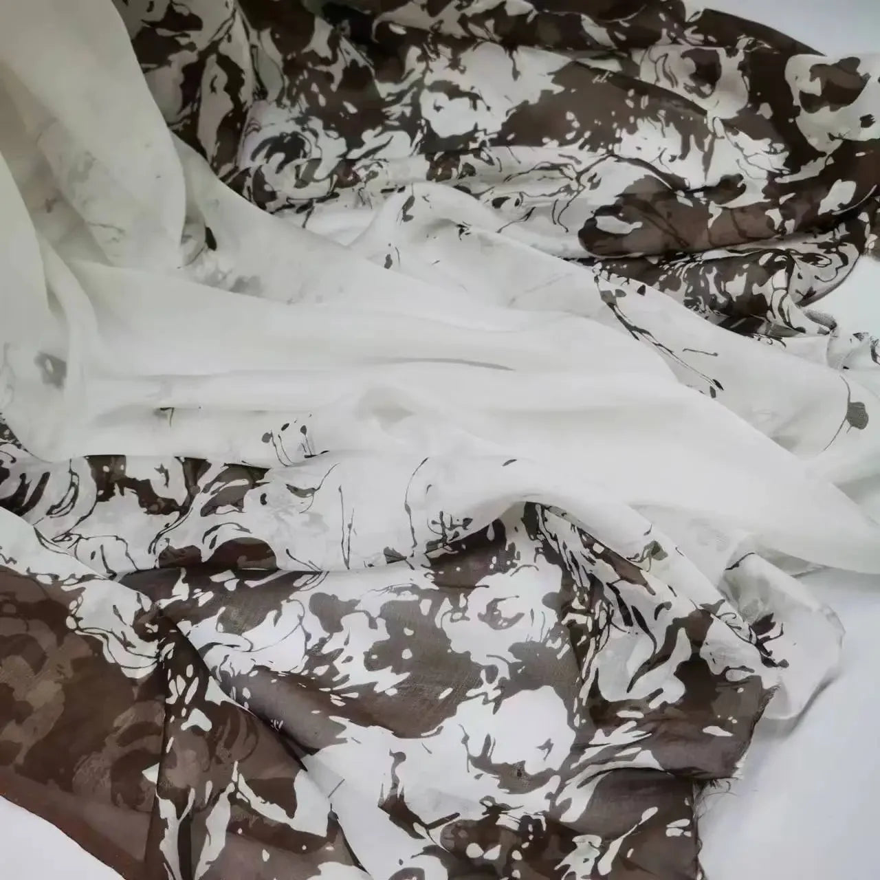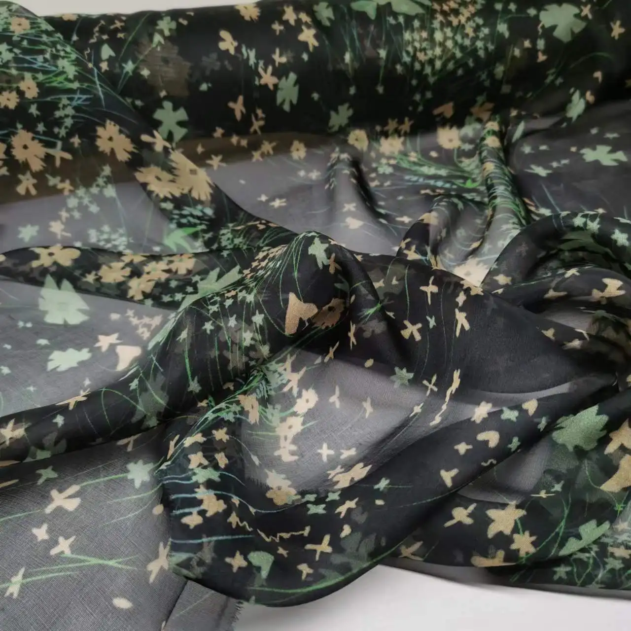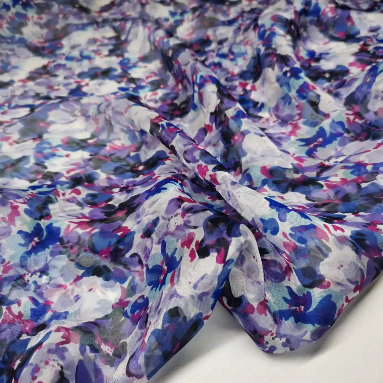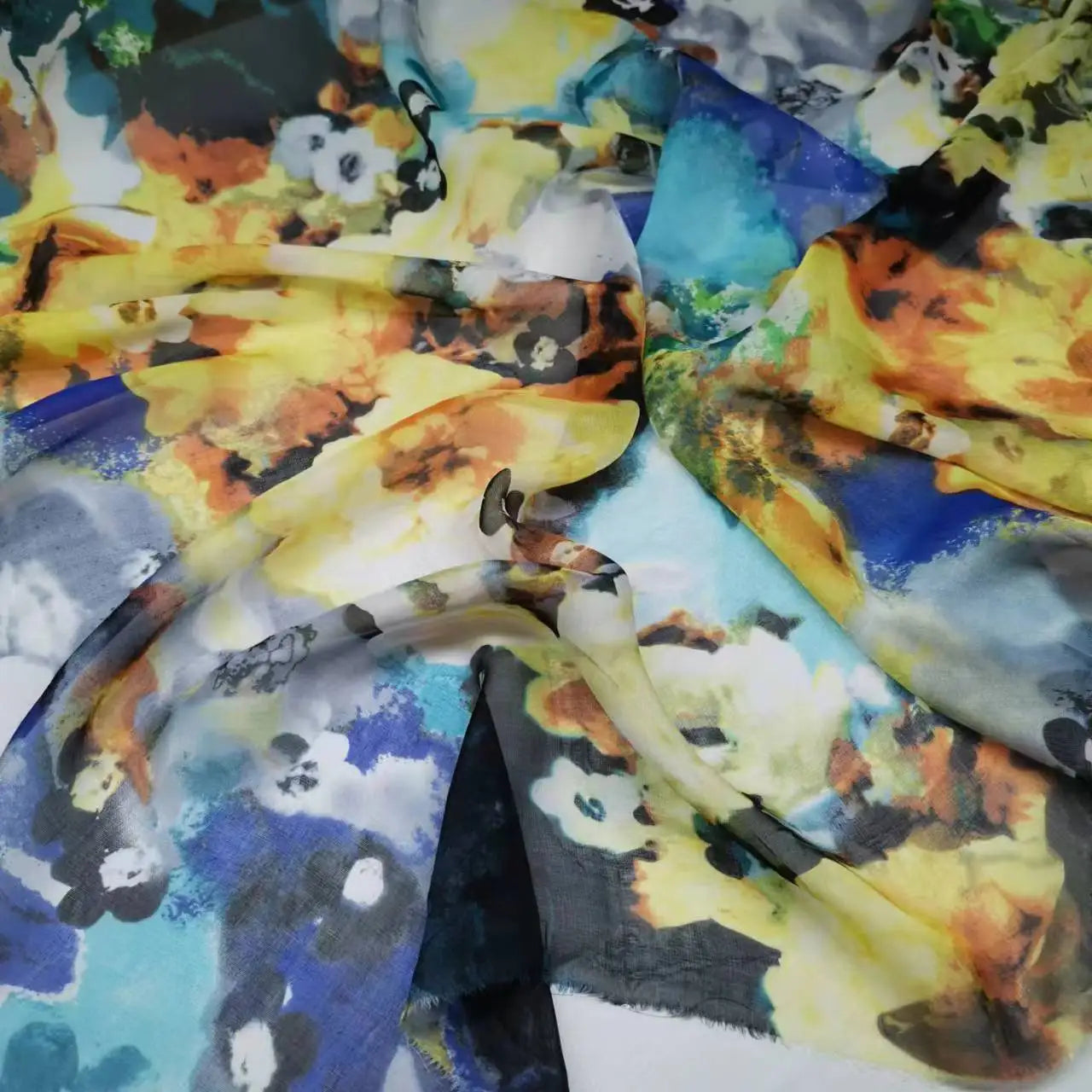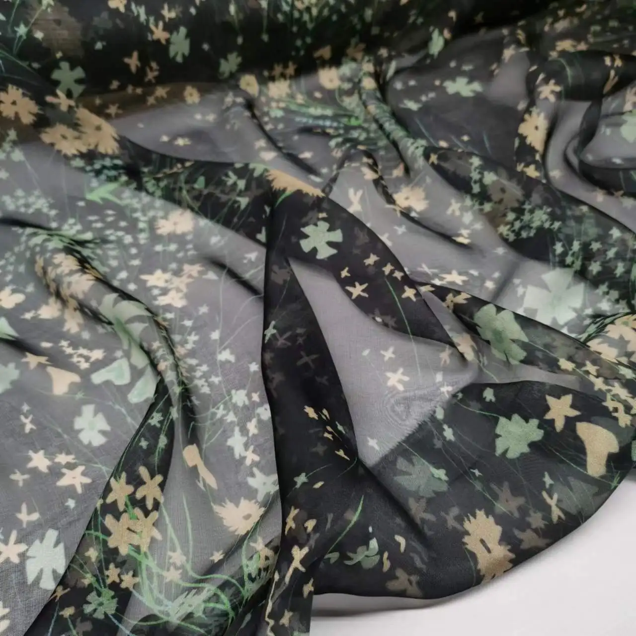 Pure Silk 100% Fabric On Sale Bohemian Floral Chiffon Style Width 135cm Soft 6mm Dress Scarf Material