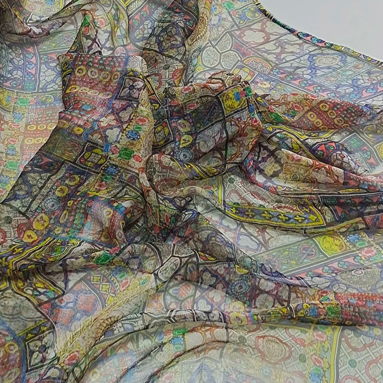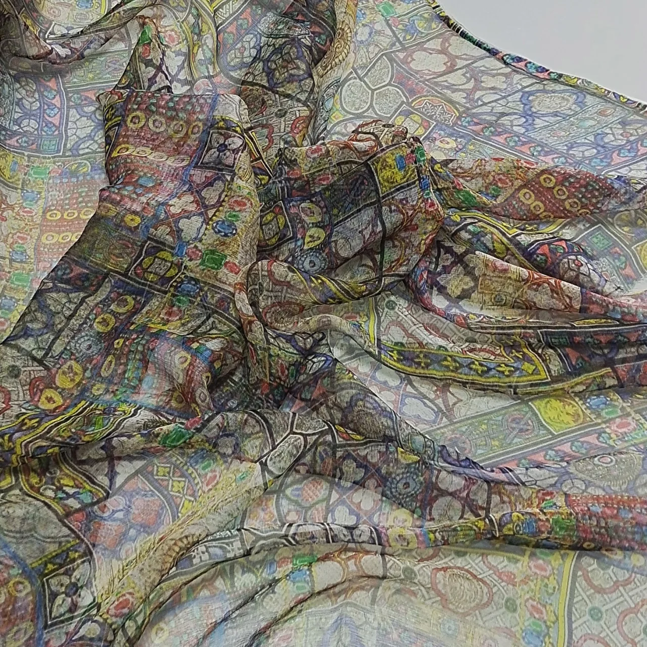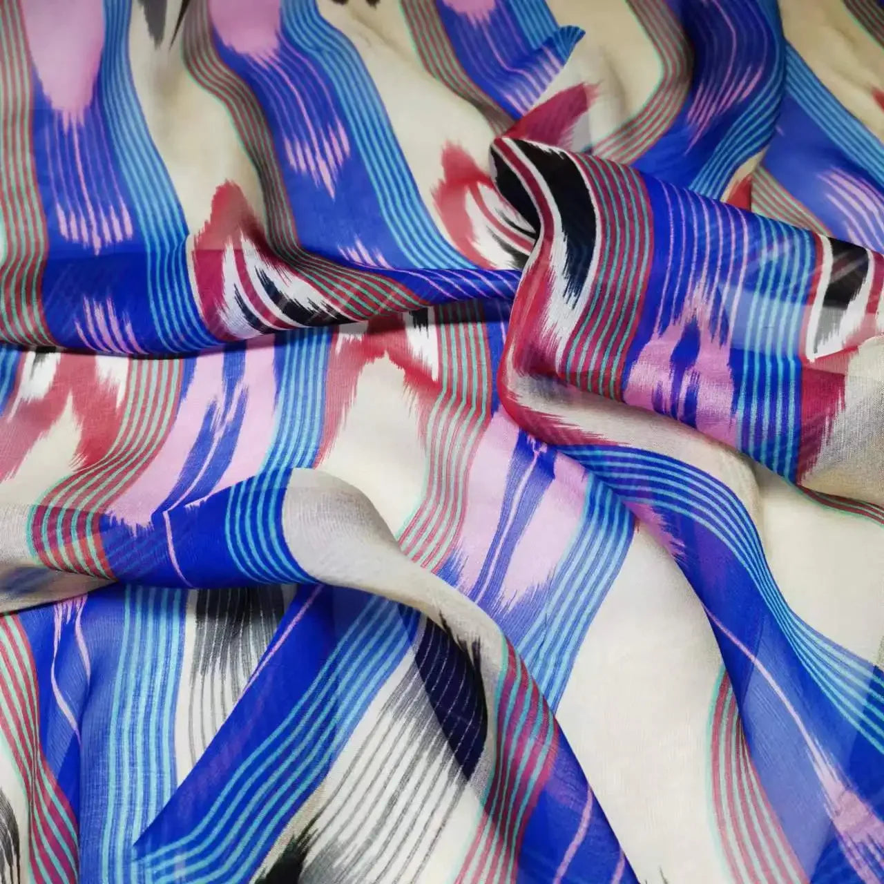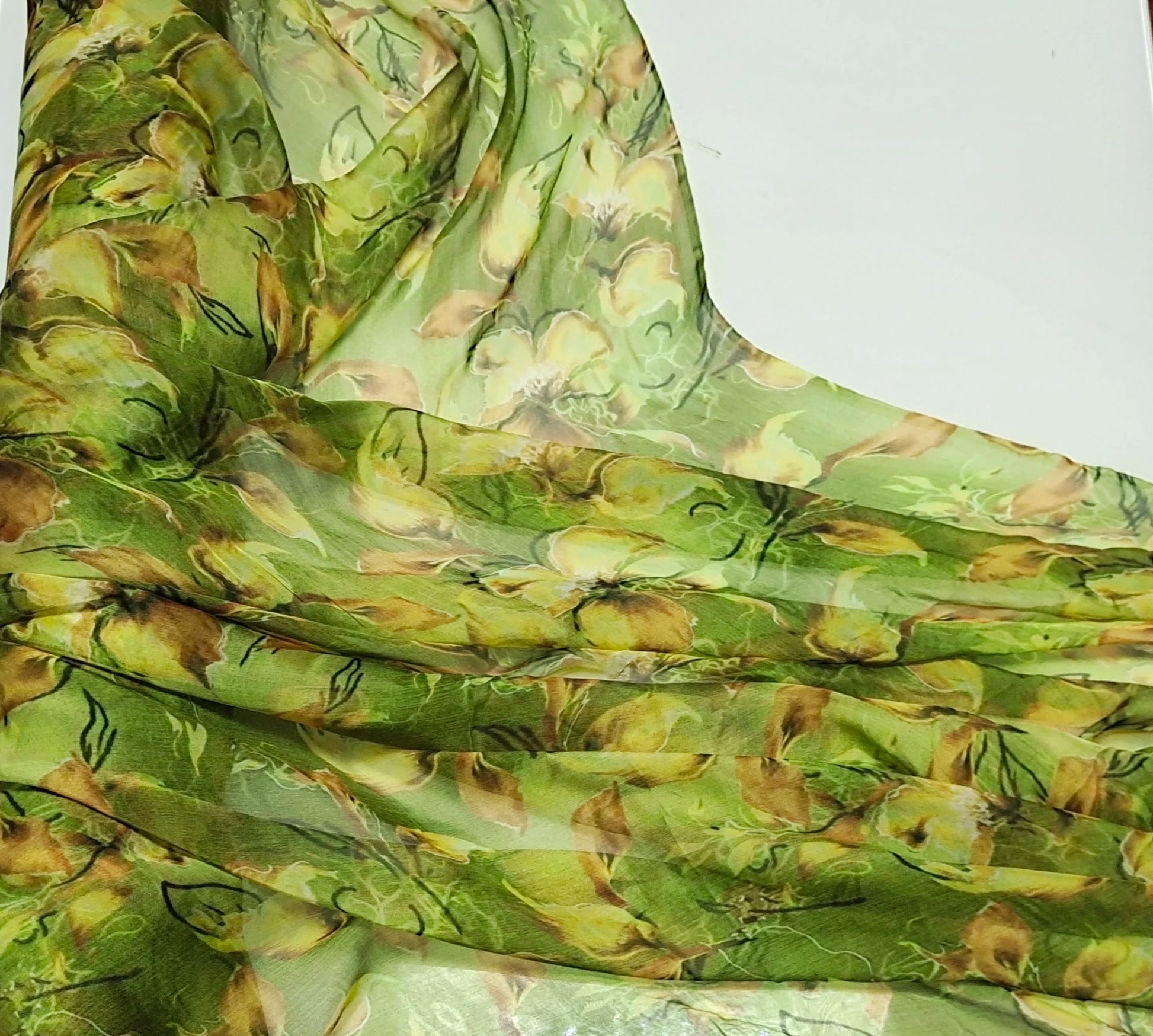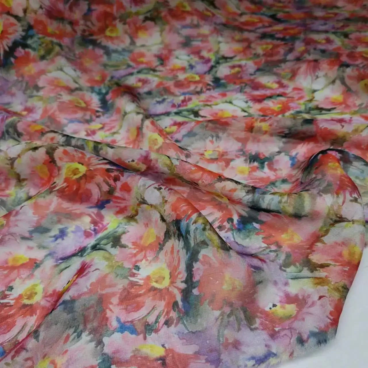 Pure Silk 100% Fabric On Sale Bohemian Floral Chiffon Style Width 135cm Soft 6mm Dress Scarf Material
