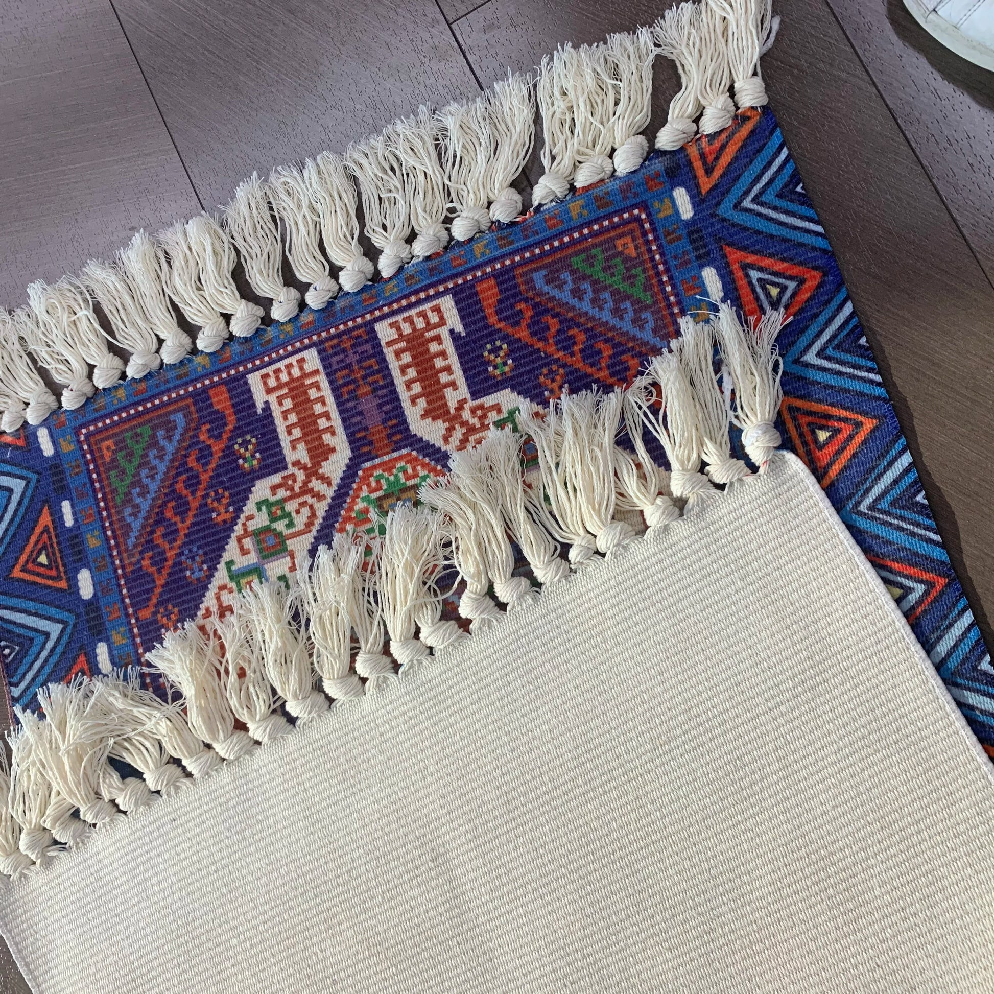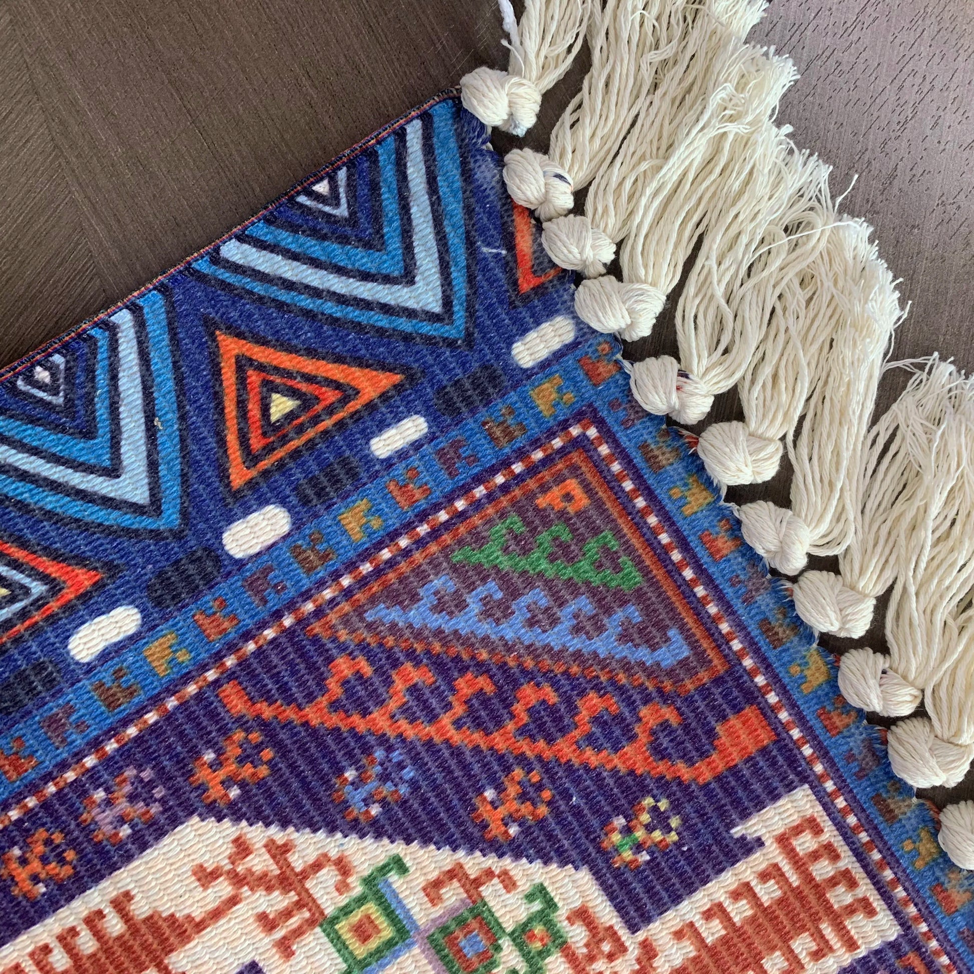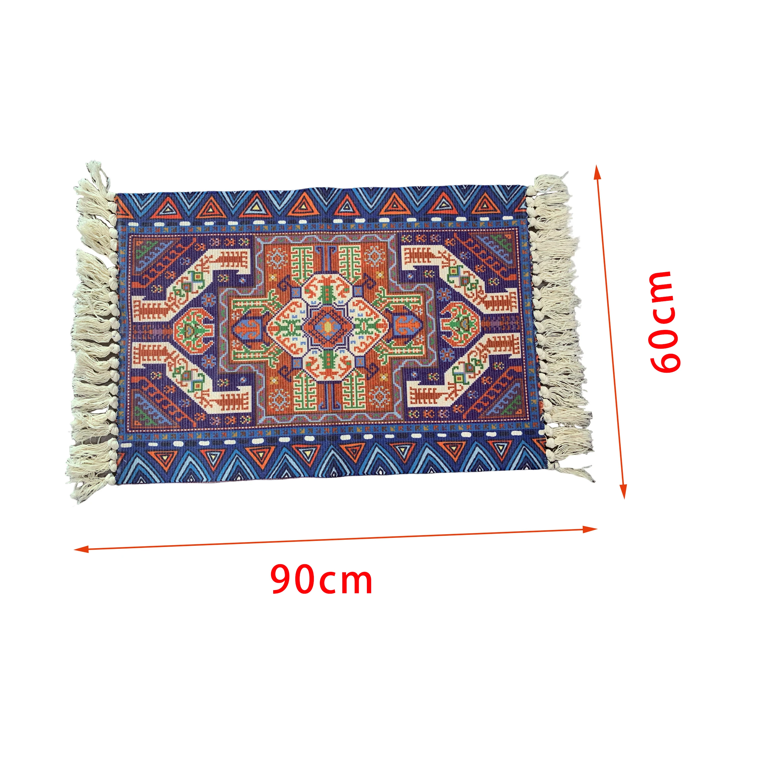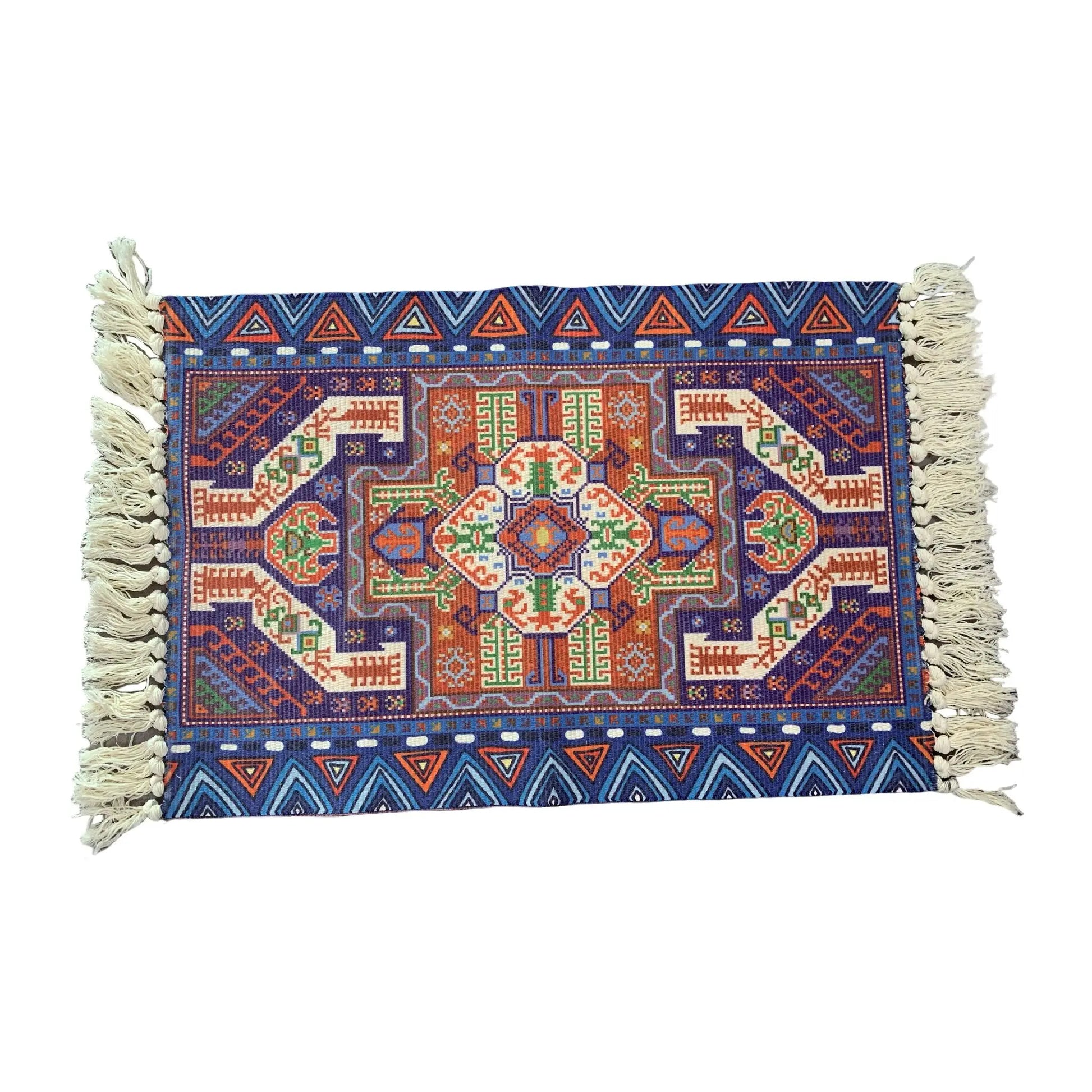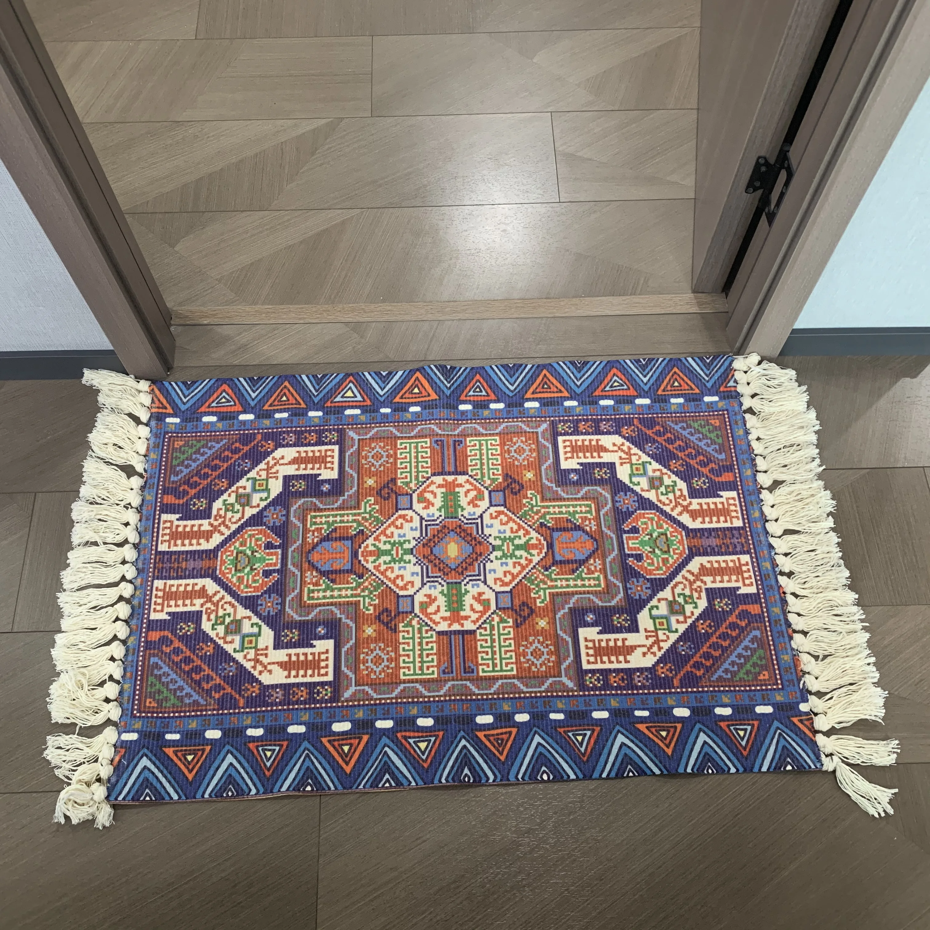 Small Throw Boho Bathroom Rug for Bath, Cotton Woven Area Carpet with Tassel for Entryway Kitchen Sink Front Door