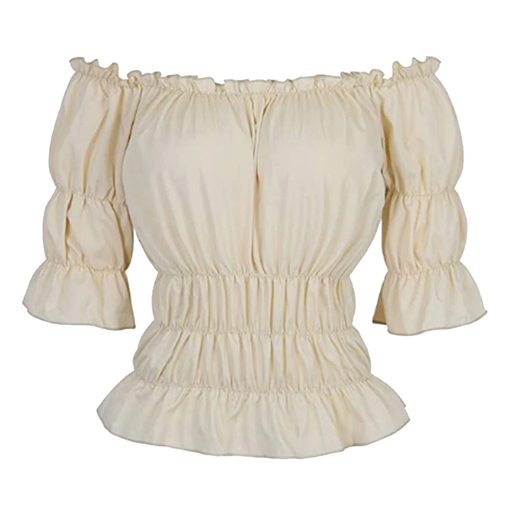 Vintage Steampunk Renaissance Blouse Women Peasant Off Shoulder Short Sleeves Shirt Boho Medieval Pirate Costume