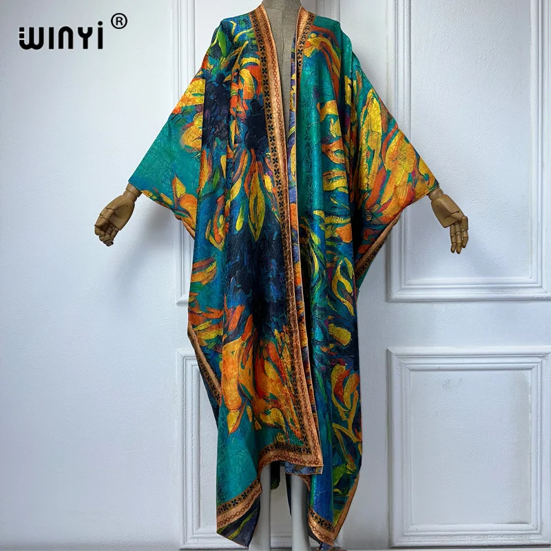 WINYI high quality boho print open coat Beach Wear Cover up elegant kaftan abaya dubai luxury Cardigan kimono maxi dress