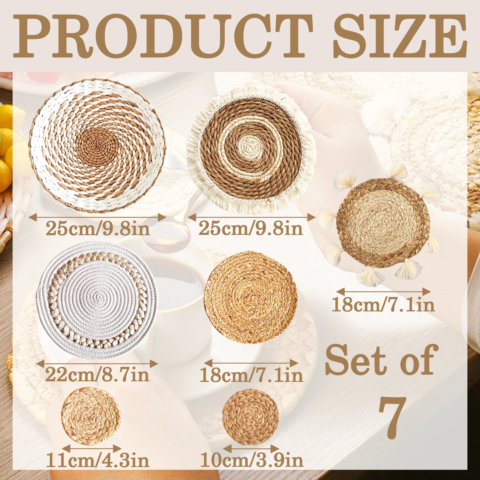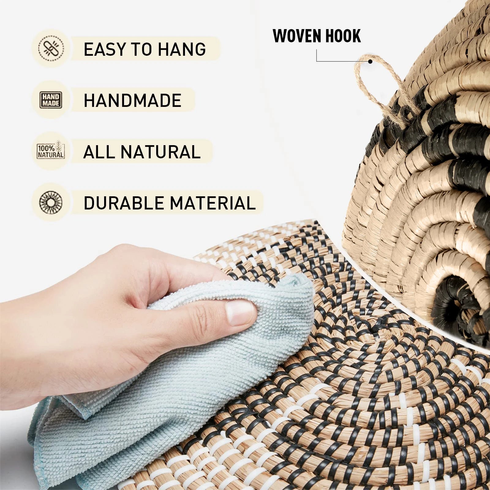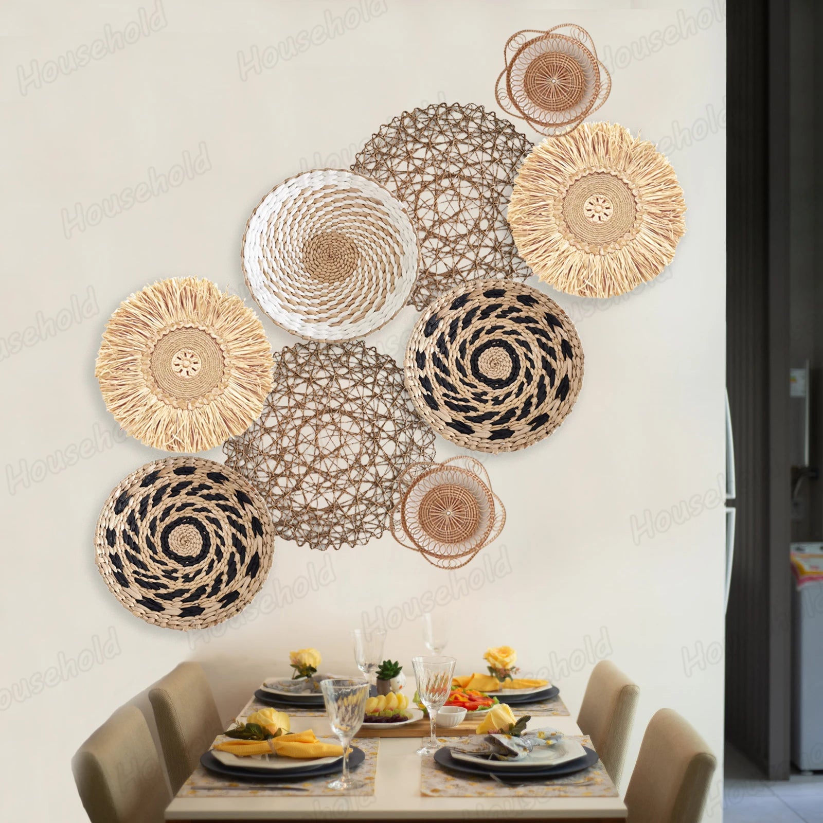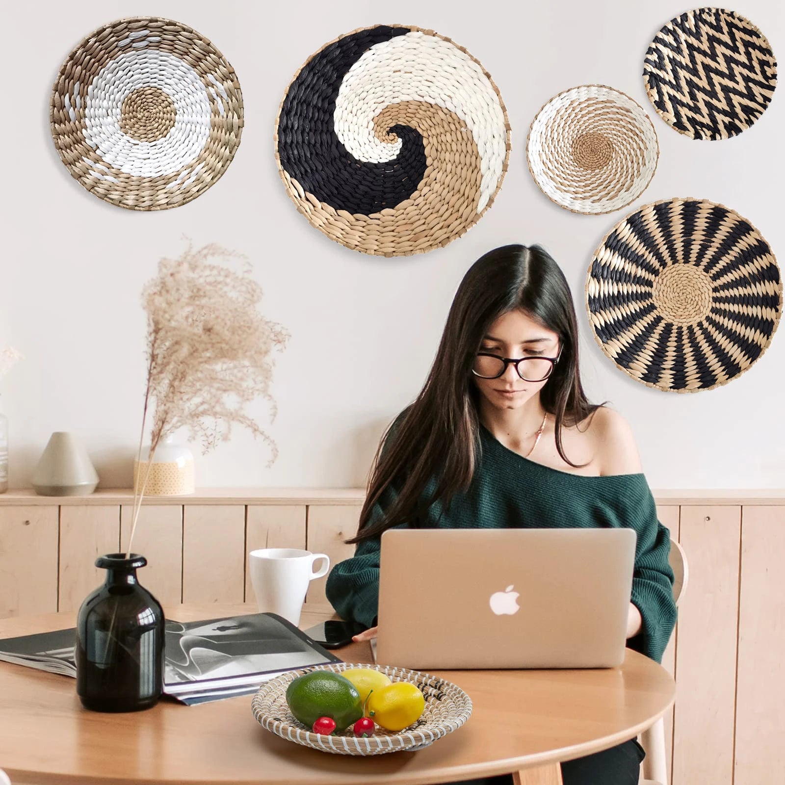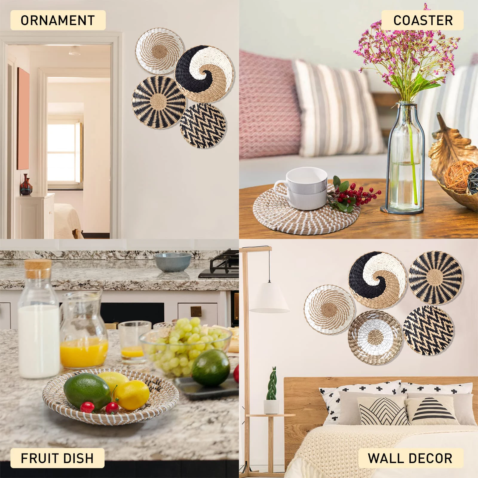 Woven Wall Basket Plate Boho Hanging Seagrass Wall Decor Natural Handmade Home Art for Living Room/Farmhouse/Kitchen